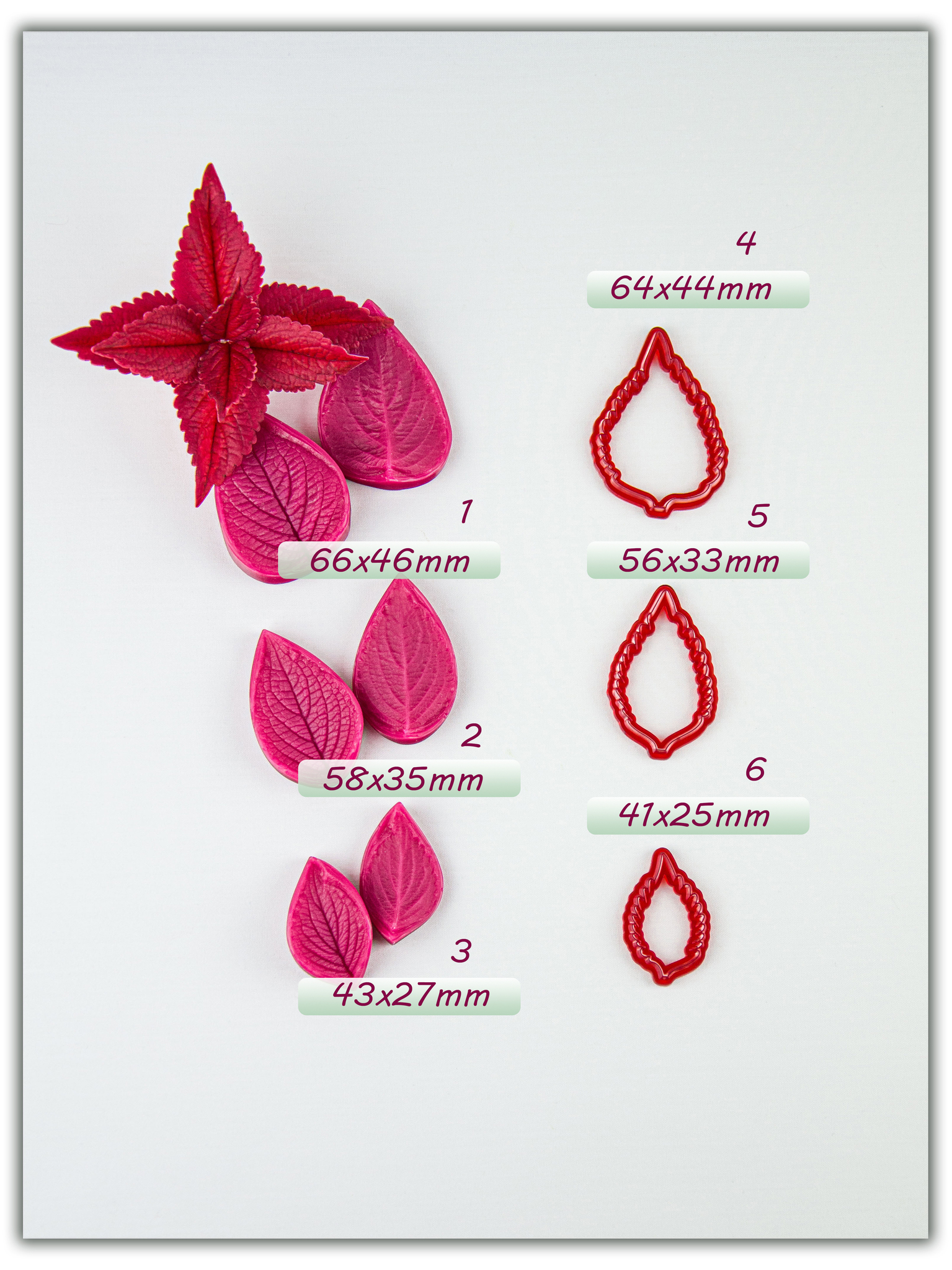 Имеют двухстороннюю фактуру живого растения, повторяя даже самые мельчайшие изгибы и прожилки, что позволит вам создавать ботанические копии цветов и листьев! Предназначены для работы с холодным фарфором,
