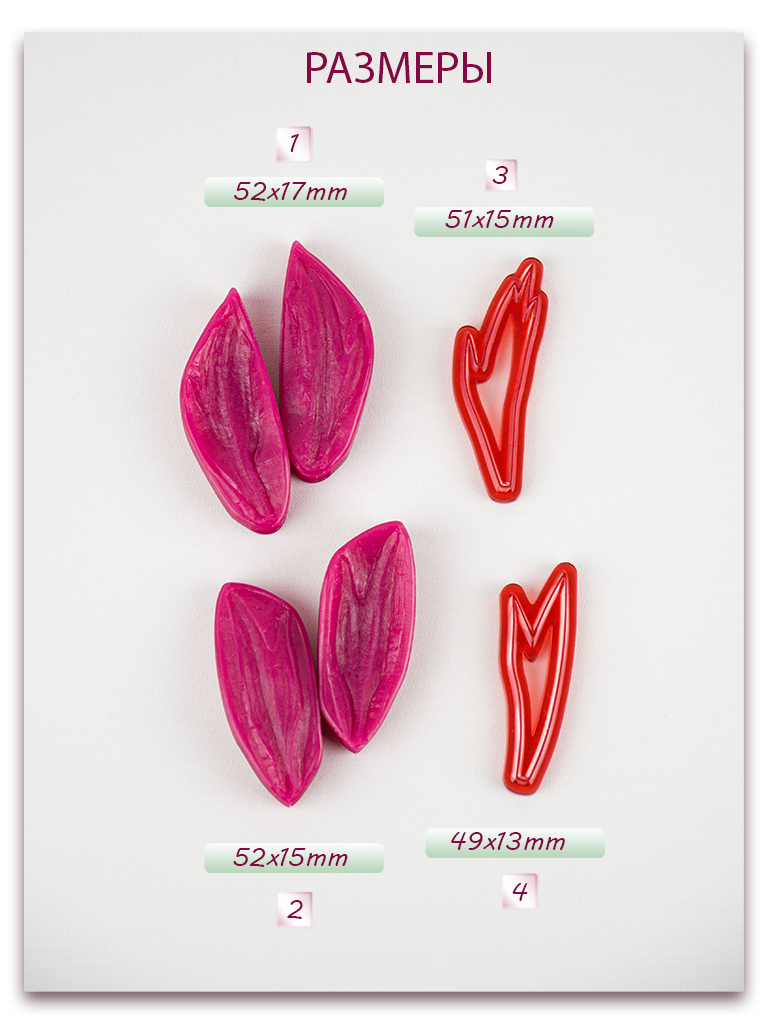 Имеют двухстороннюю фактуру живого растения, повторяя даже самые мельчайшие изгибы и прожилки, что позволит вам создавать ботанические копии цветов и листьев! Предназначены для работы с холодным фарфором,