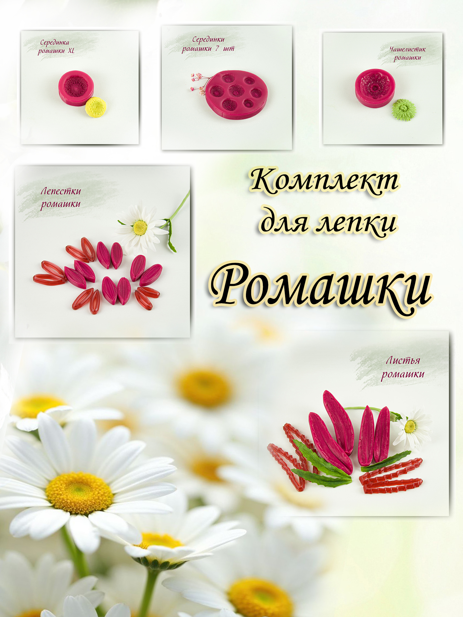 Полноценный комплект для лепки цветов и листьев ромашки. в комплект входят наборы: