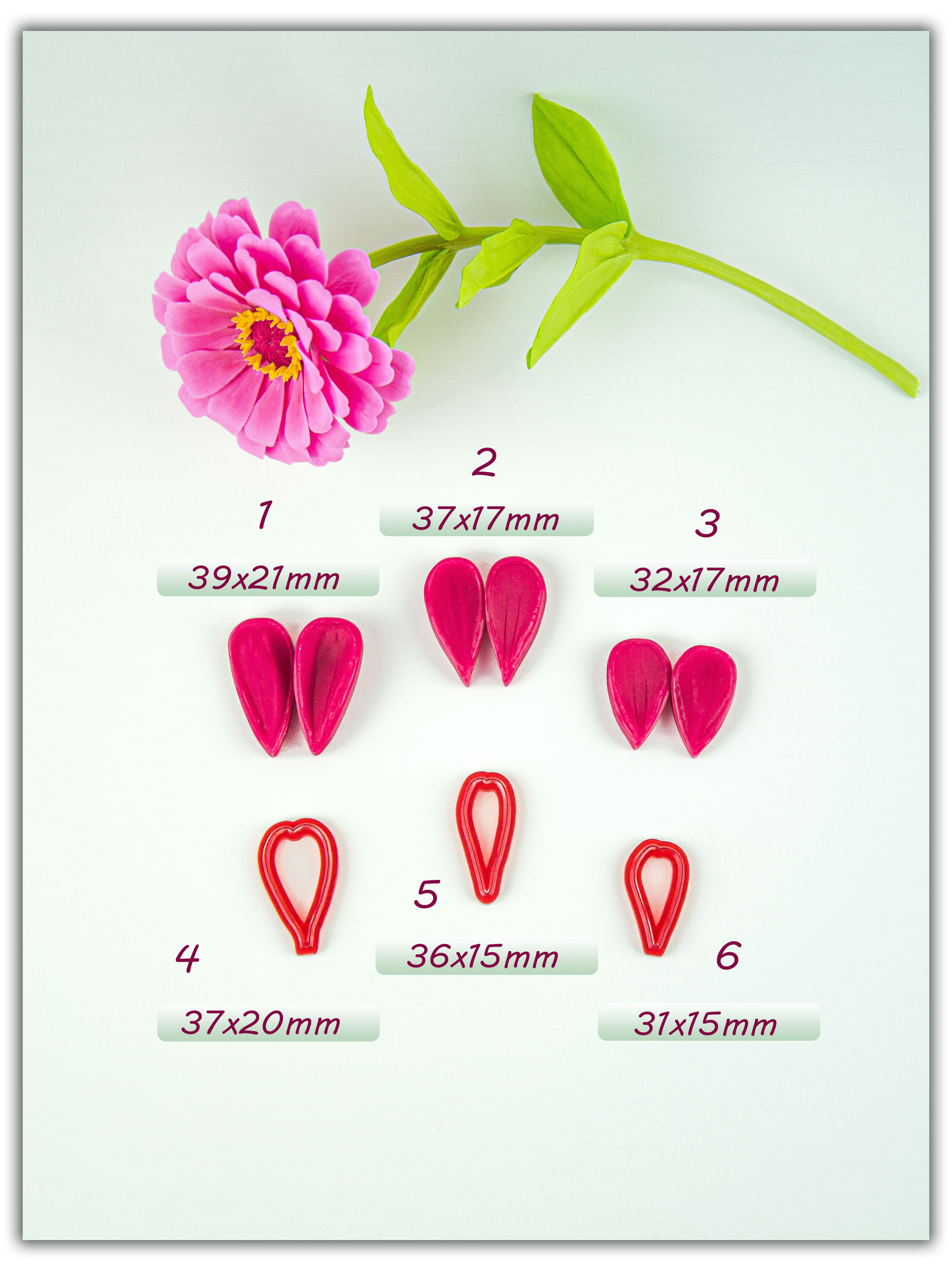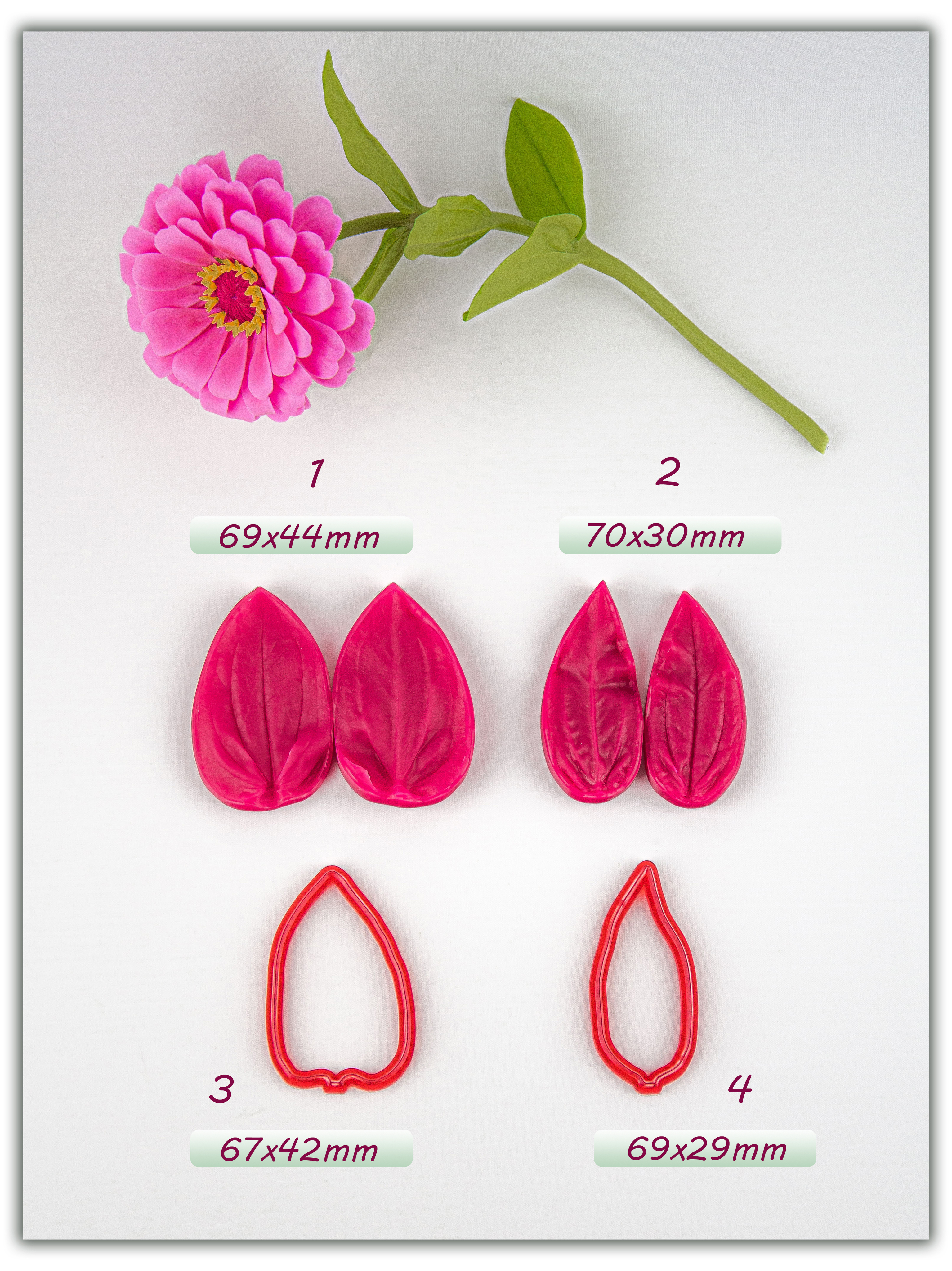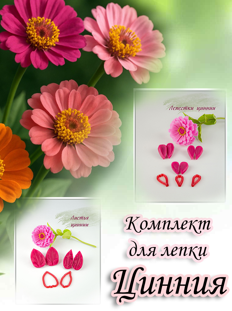 Универсальный комплект для лепки разнообразных цветов цинний с листьями. В комплект входят наборы: