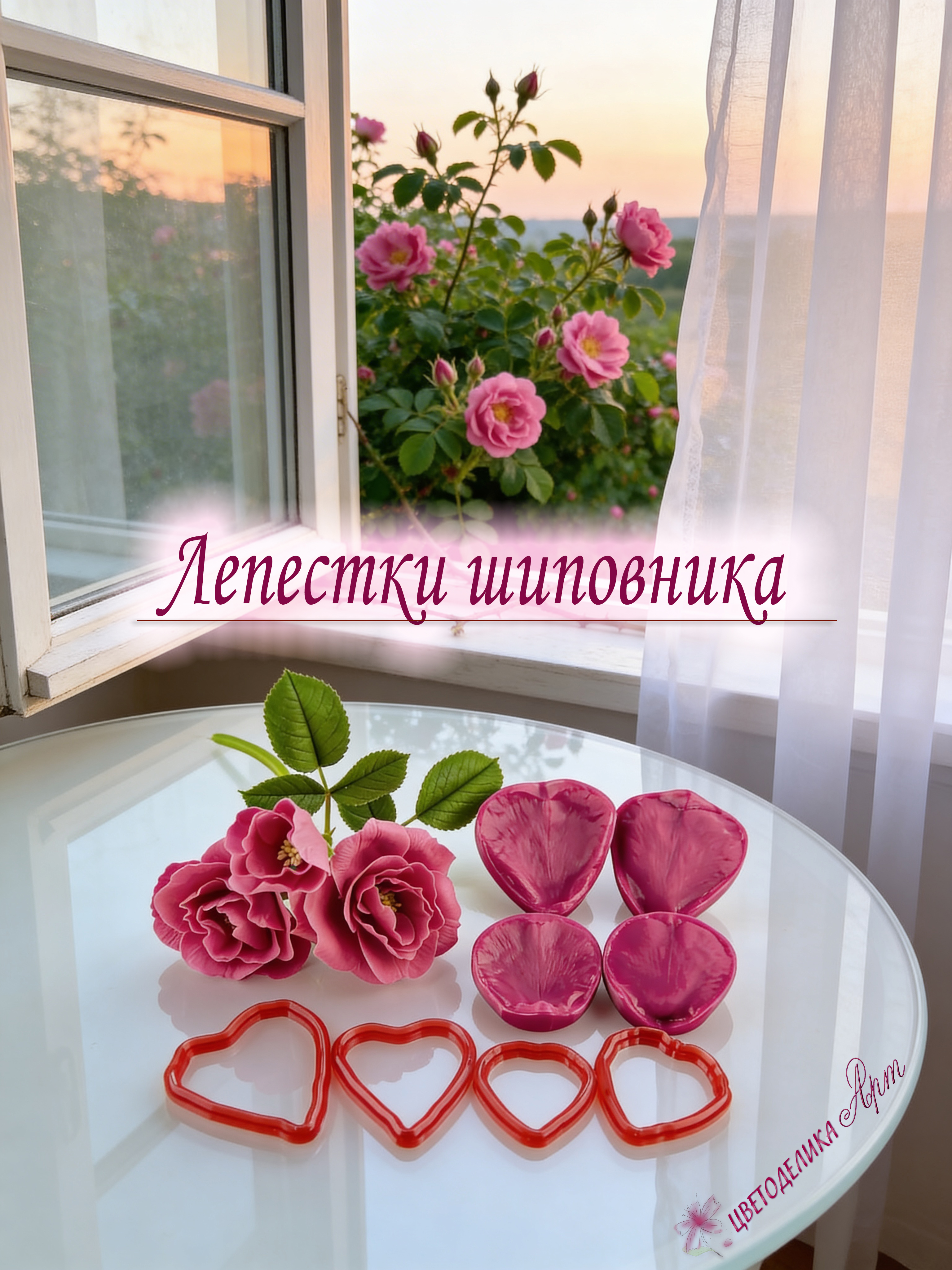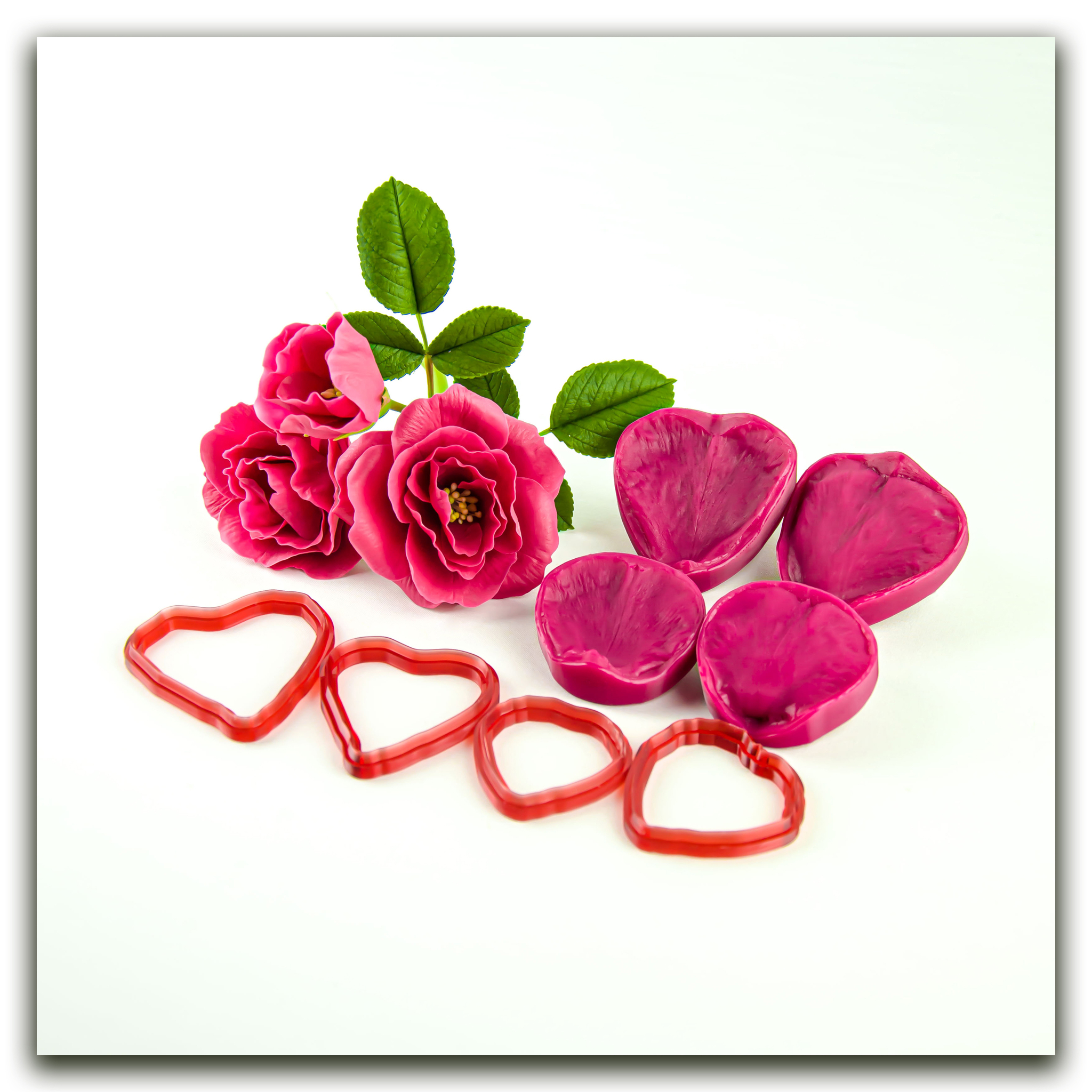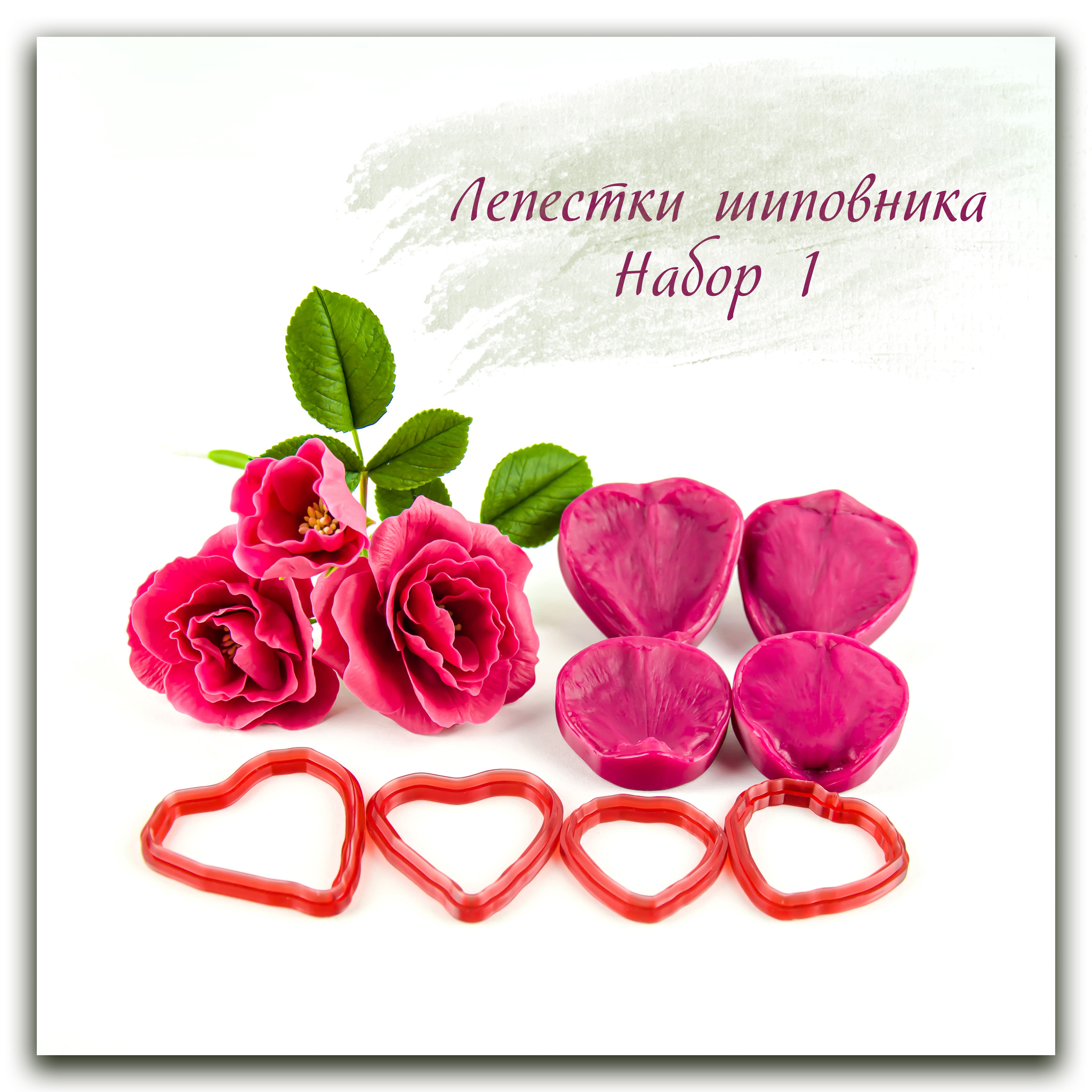 Набор вайнеров и каттеров для лепки реалистичных цветов шиповника из холодного фарфора, полимерной глины и других масс.