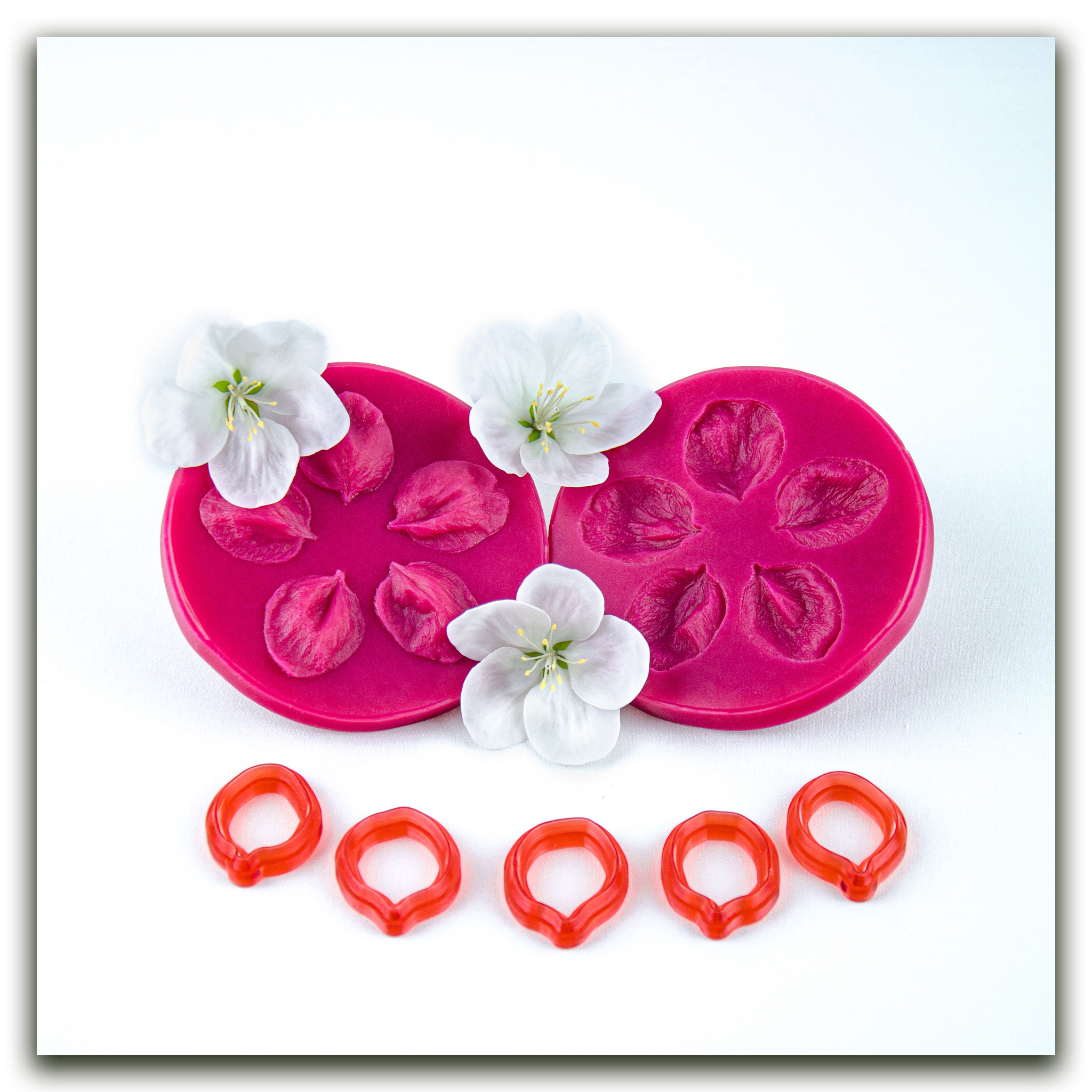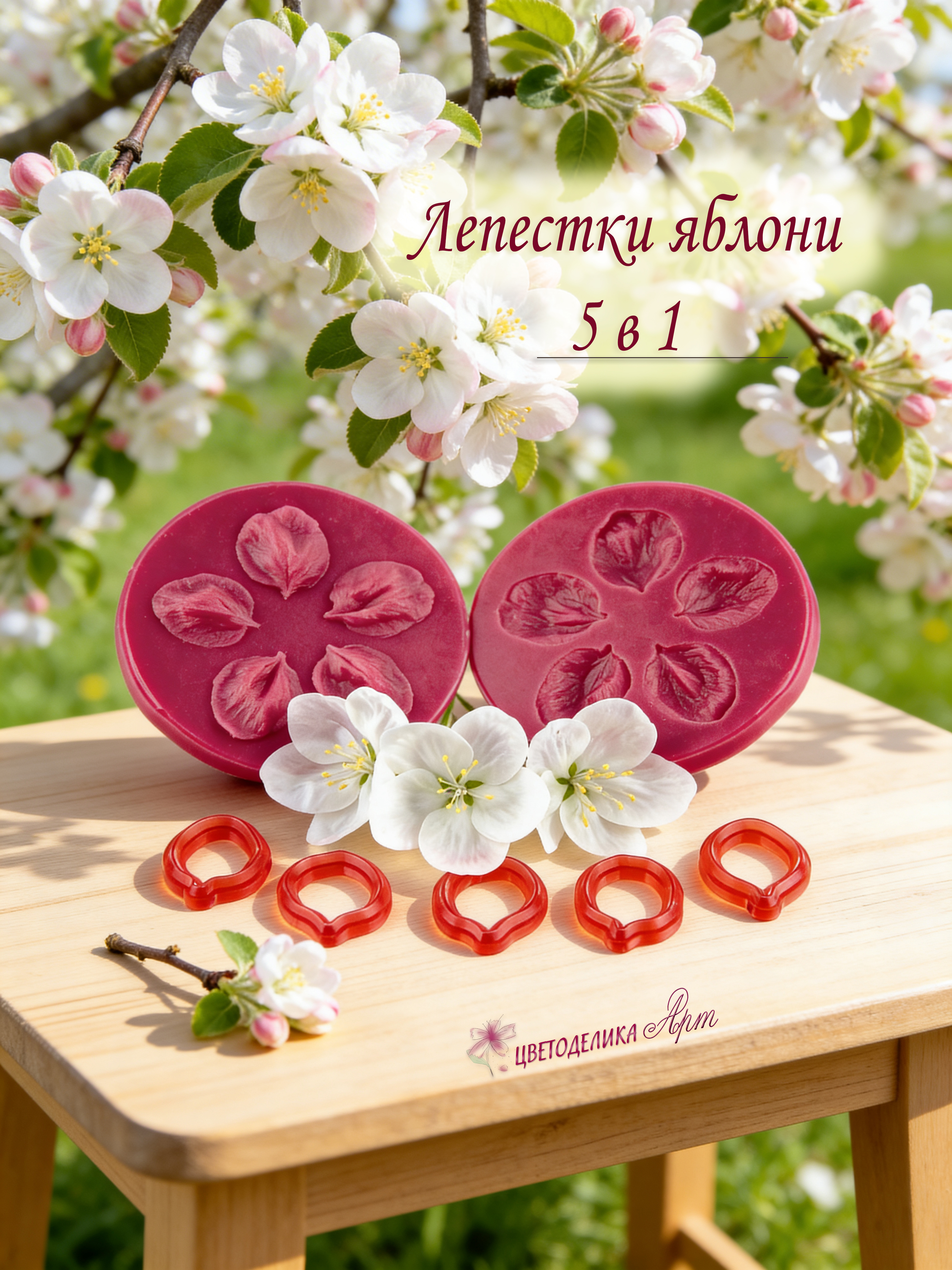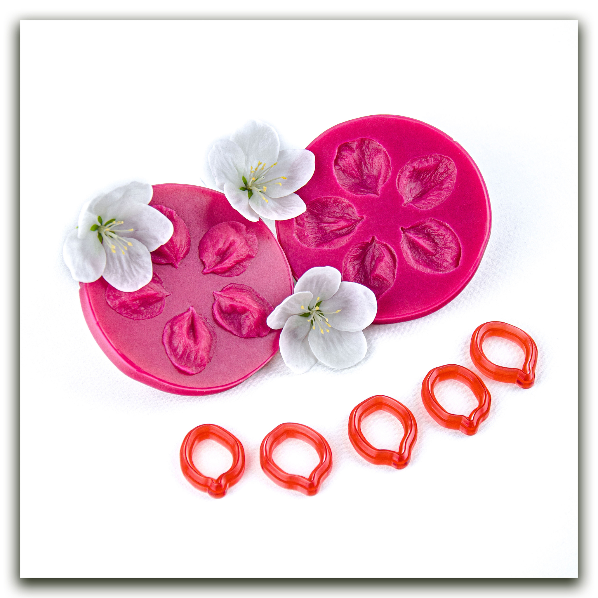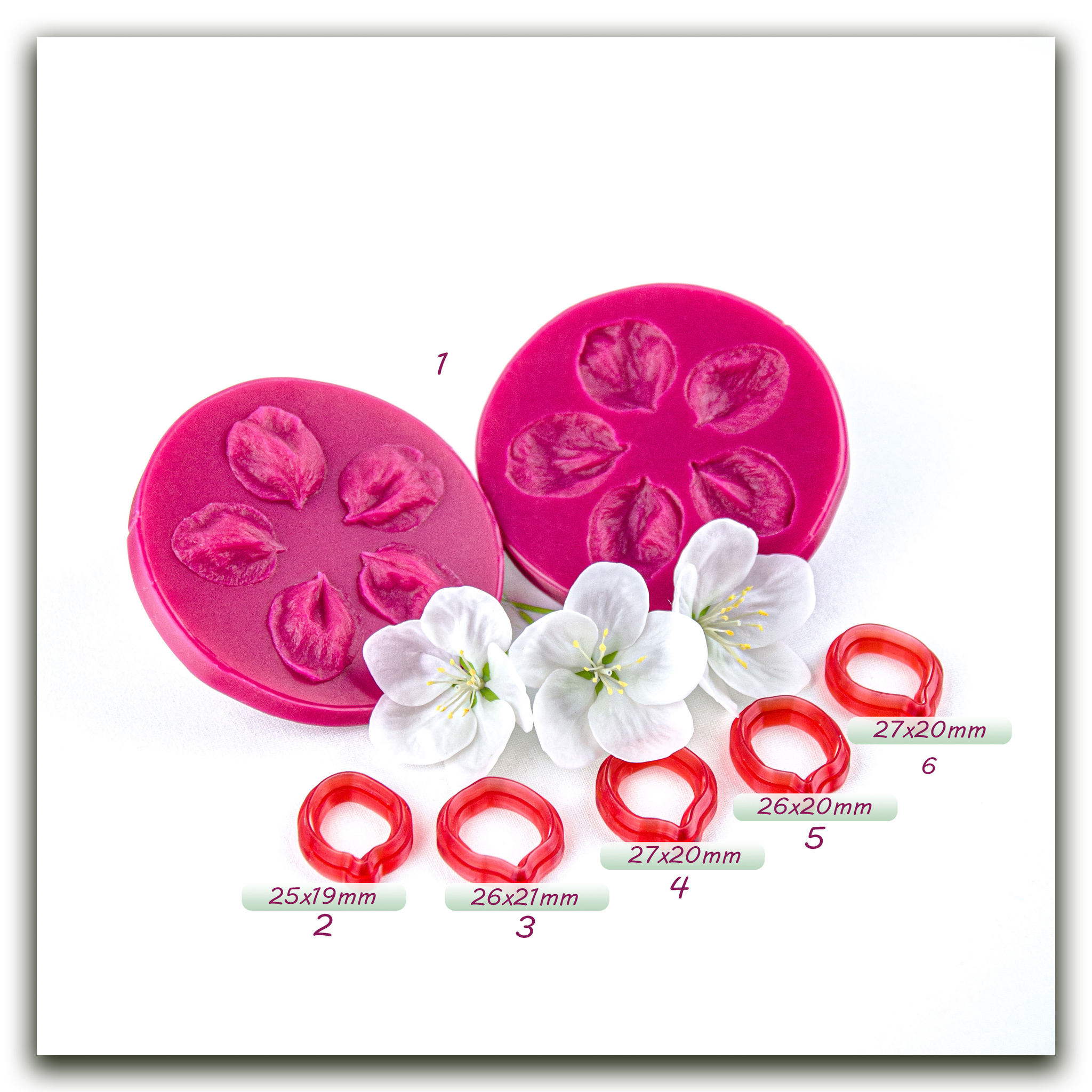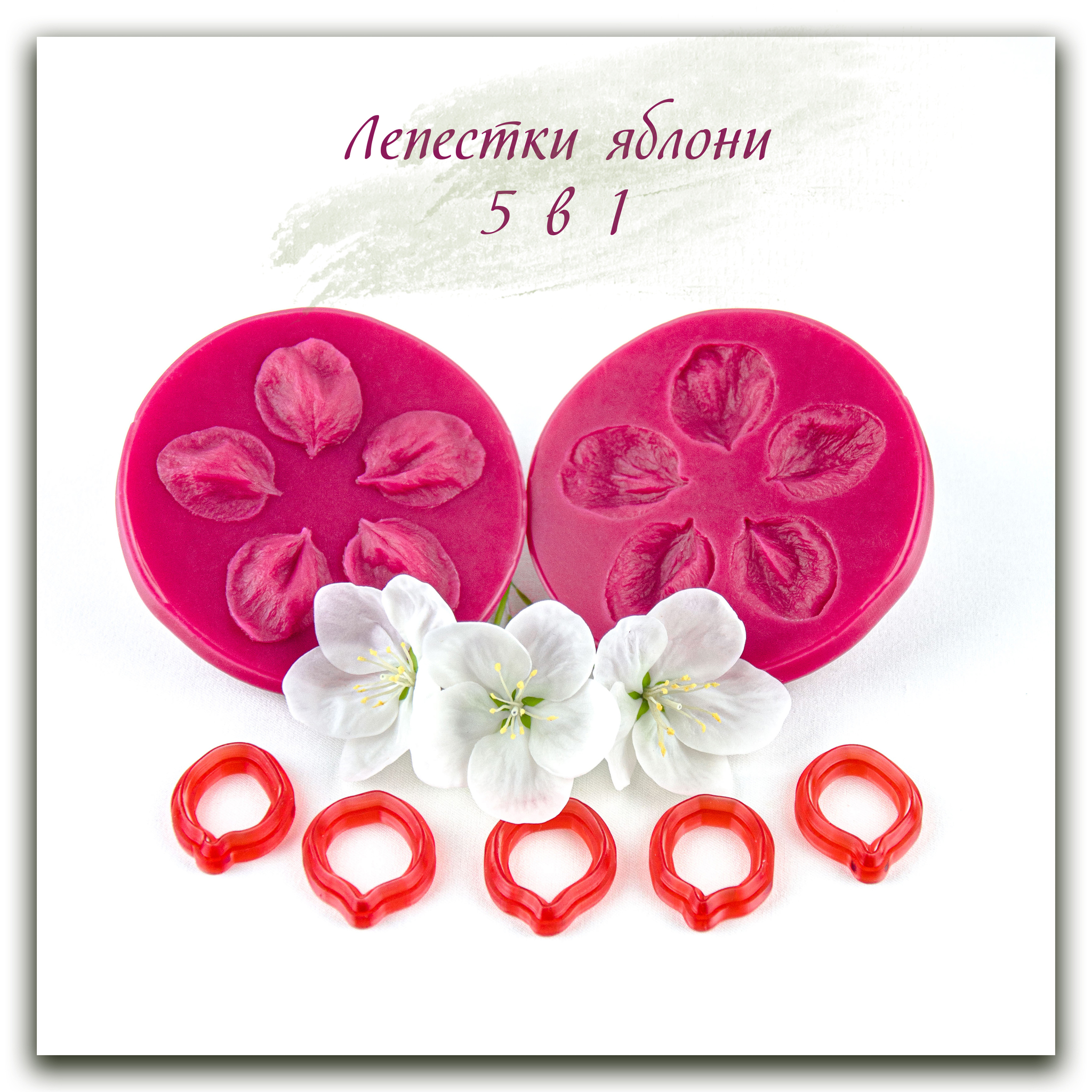 Набор вайнер+каттеры лепестков цветущей яблони. Вайнер создан таким образом, чтобы была возможность работать одновременно с пятью лепестками. При этом можно работать только с одним лепестком, выбрав понравившуюся фактуру.