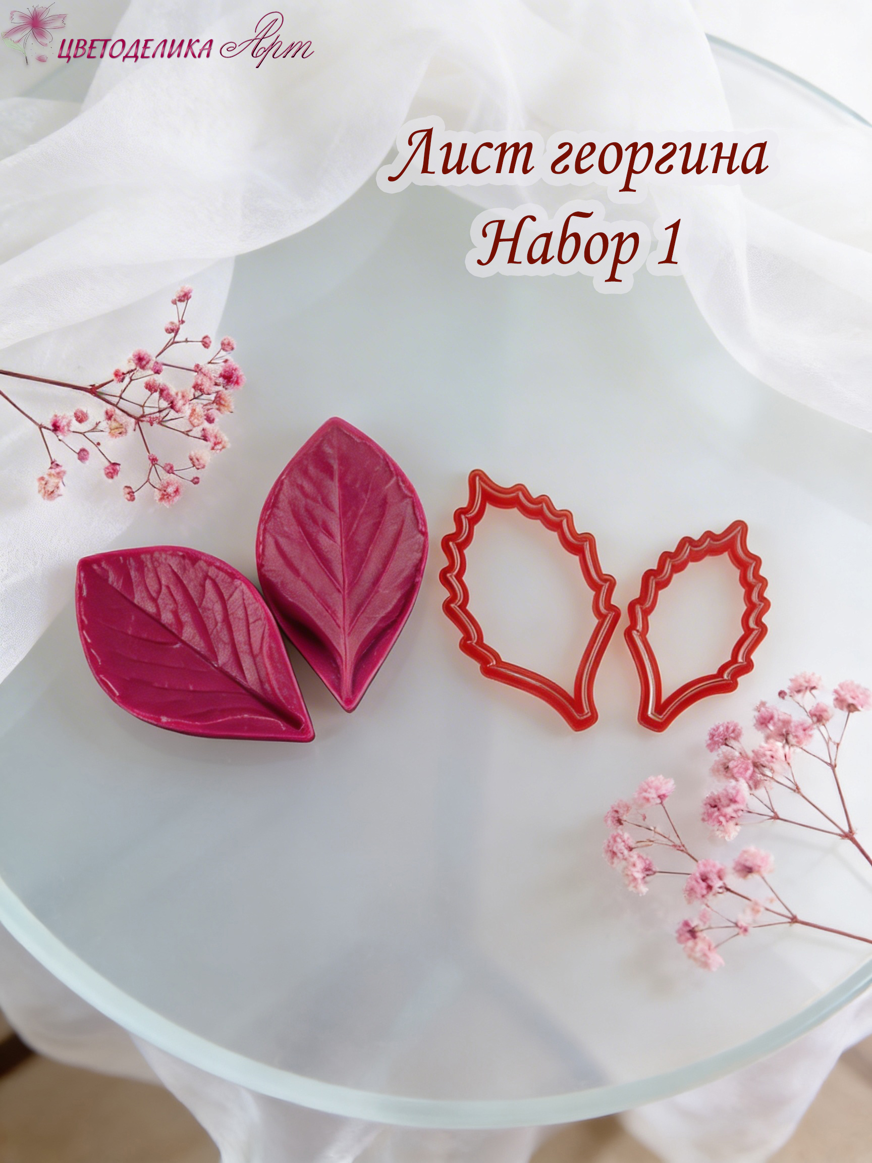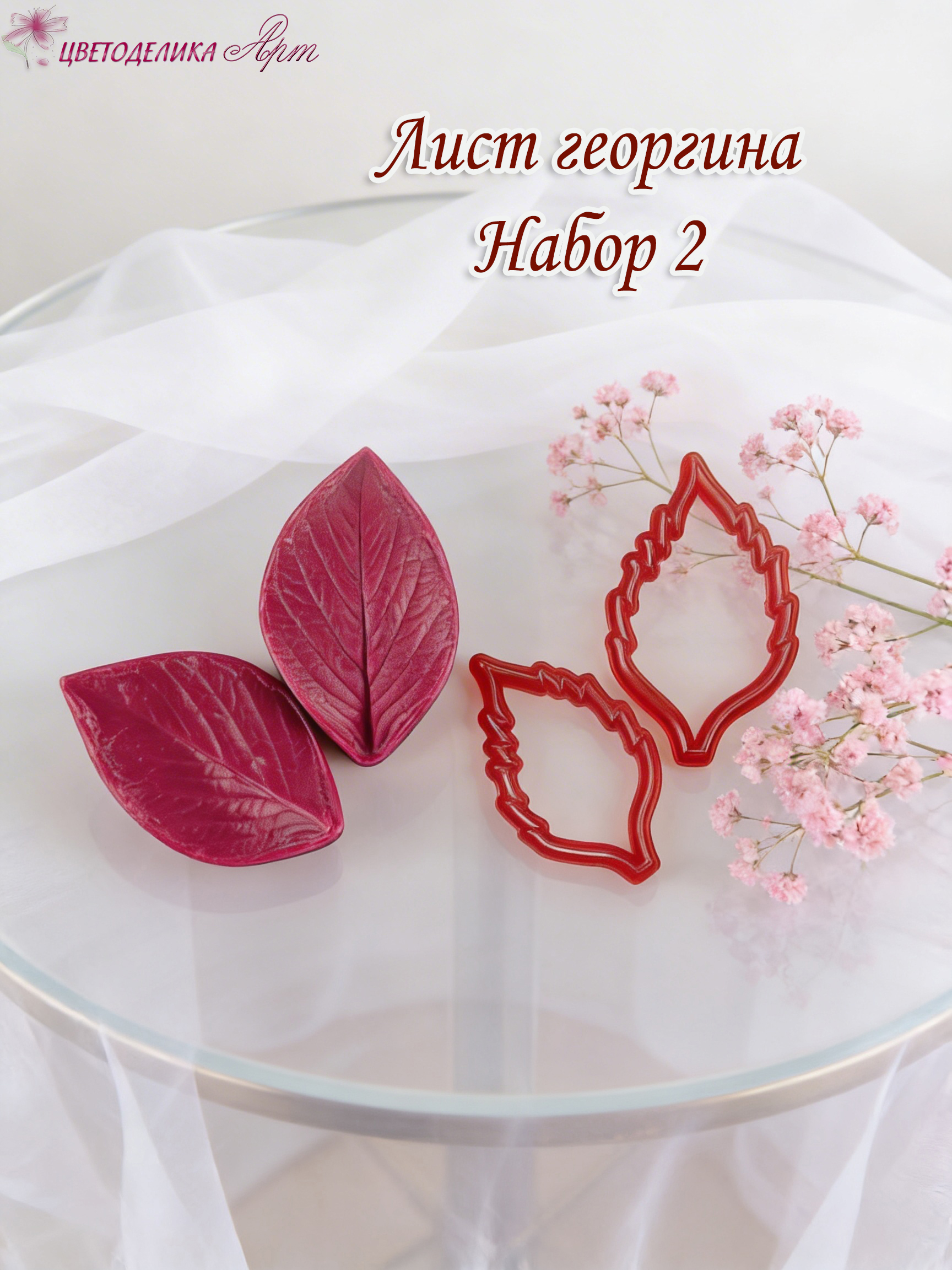 Силиконовый вайнер и большой набор каттеров для лепки реалистичного цветка георгина. Вайнер имеет ярко выраженную фактуру с изгибами, позволяющий создавать различные сорта георгинов, в частности пышные махровые цветы. Фактура снята с крупного лепестка, двухсторонняя. В наборе 1 вайнер и 13 каттеров, включая крупные и самые мелкие чашелистики (12, 13 и 14 номера).