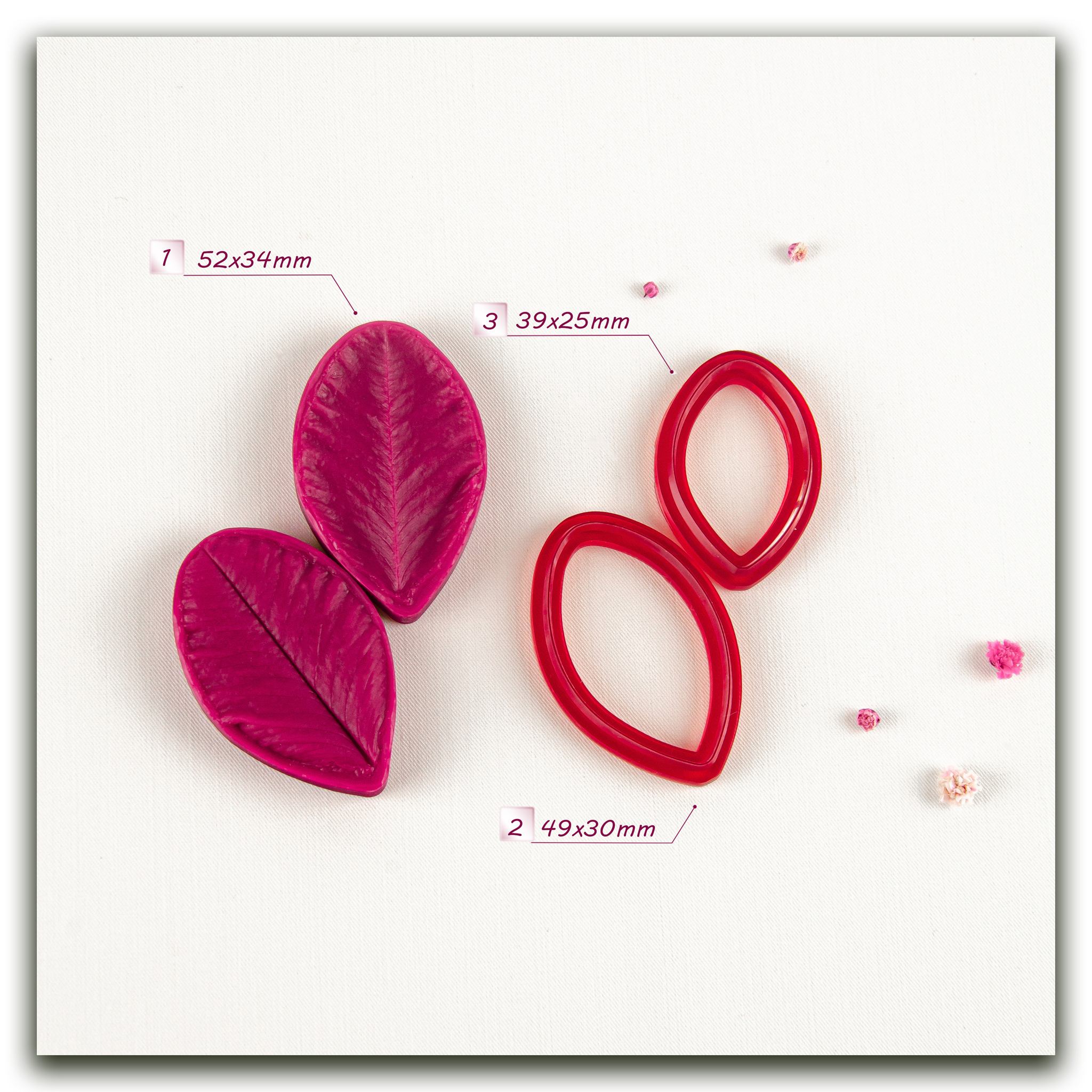 Имеют двухстороннюю фактуру живого растения, повторяя даже самые мельчайшие изгибы и прожилки, что позволит вам создавать ботанические копии цветов и листьев! Предназначены для работы с холодным фарфором,