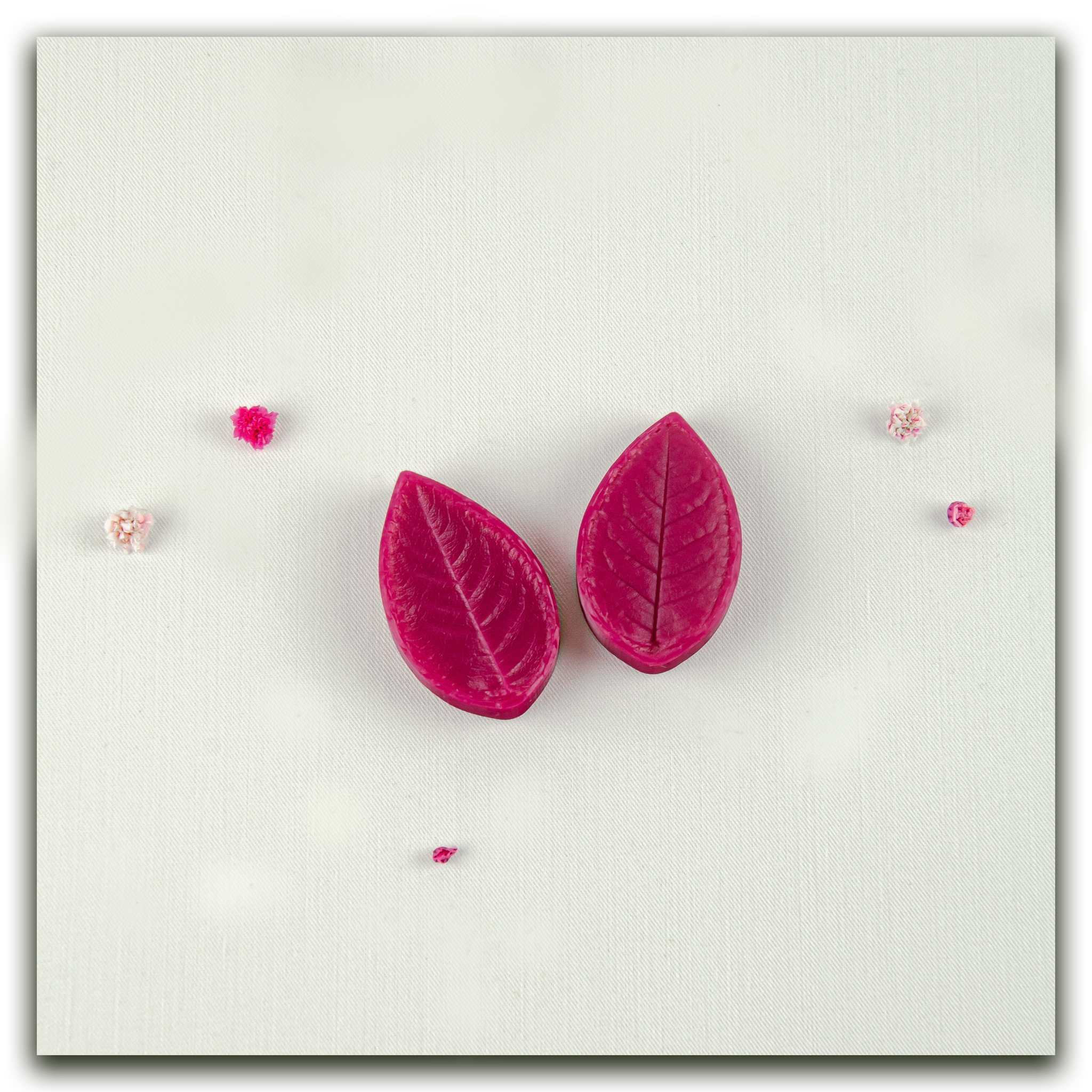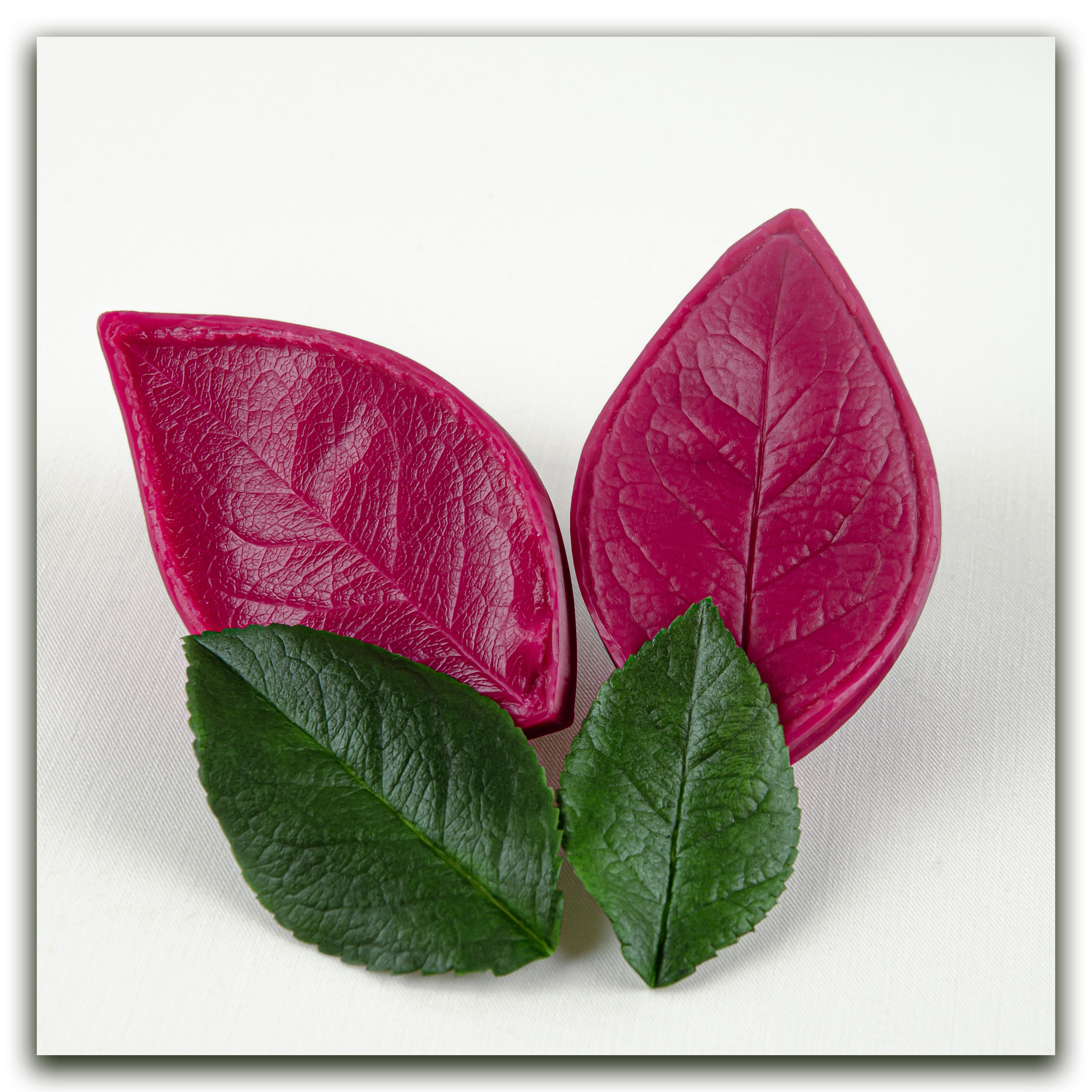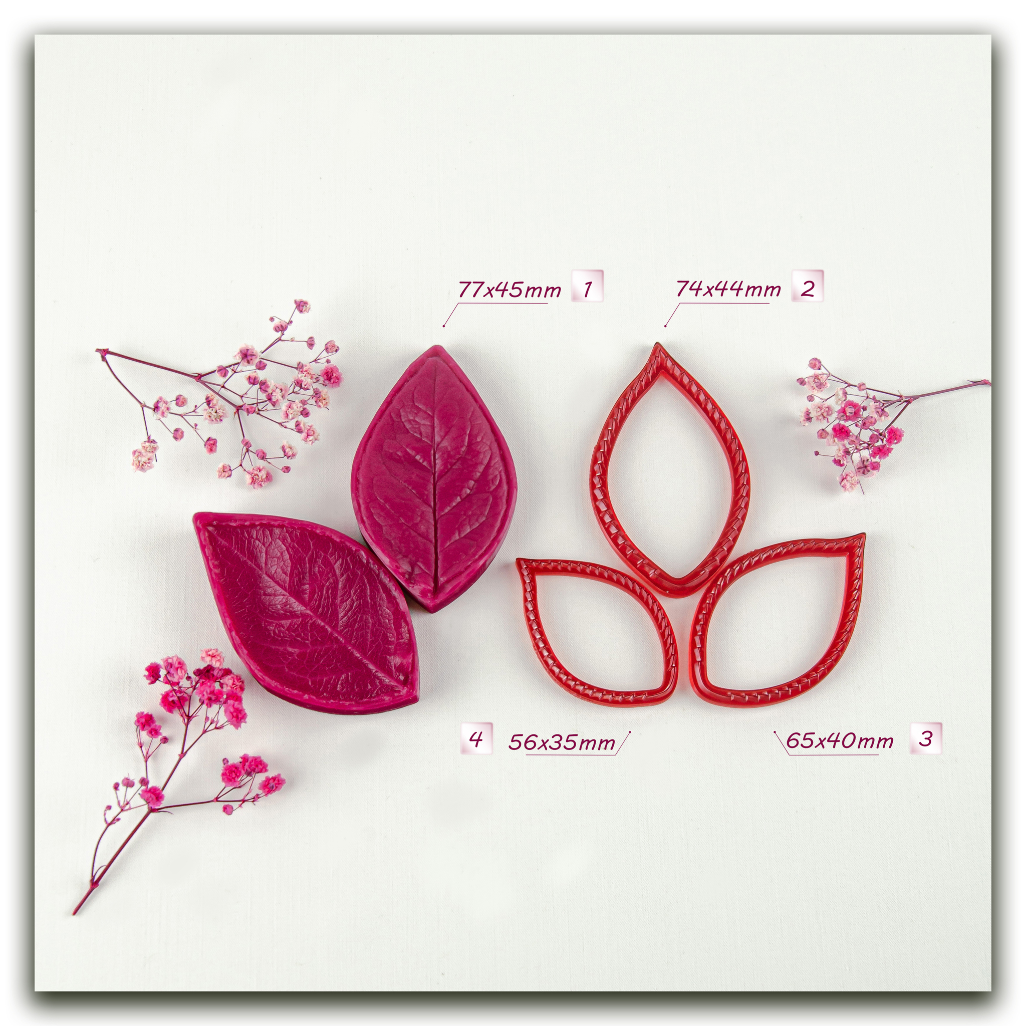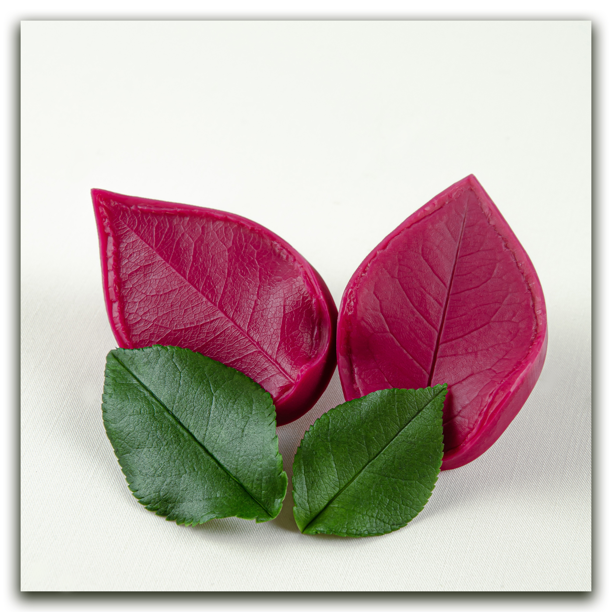 Изготавливаются методом двухстороннего снятия фактур с живого растения, повторяя даже самые мельчайшие изгибы и прожилки, что позволит вам создавать ботанические копии цветов и листьев! Предназначены для работы с холодным фарфором, самоотвердевающей и запекаемой полимерной глиной (не очень жесткой), фоамираном. Вайнеры так же подходят для мастики, шоколада и других масс для лепки.