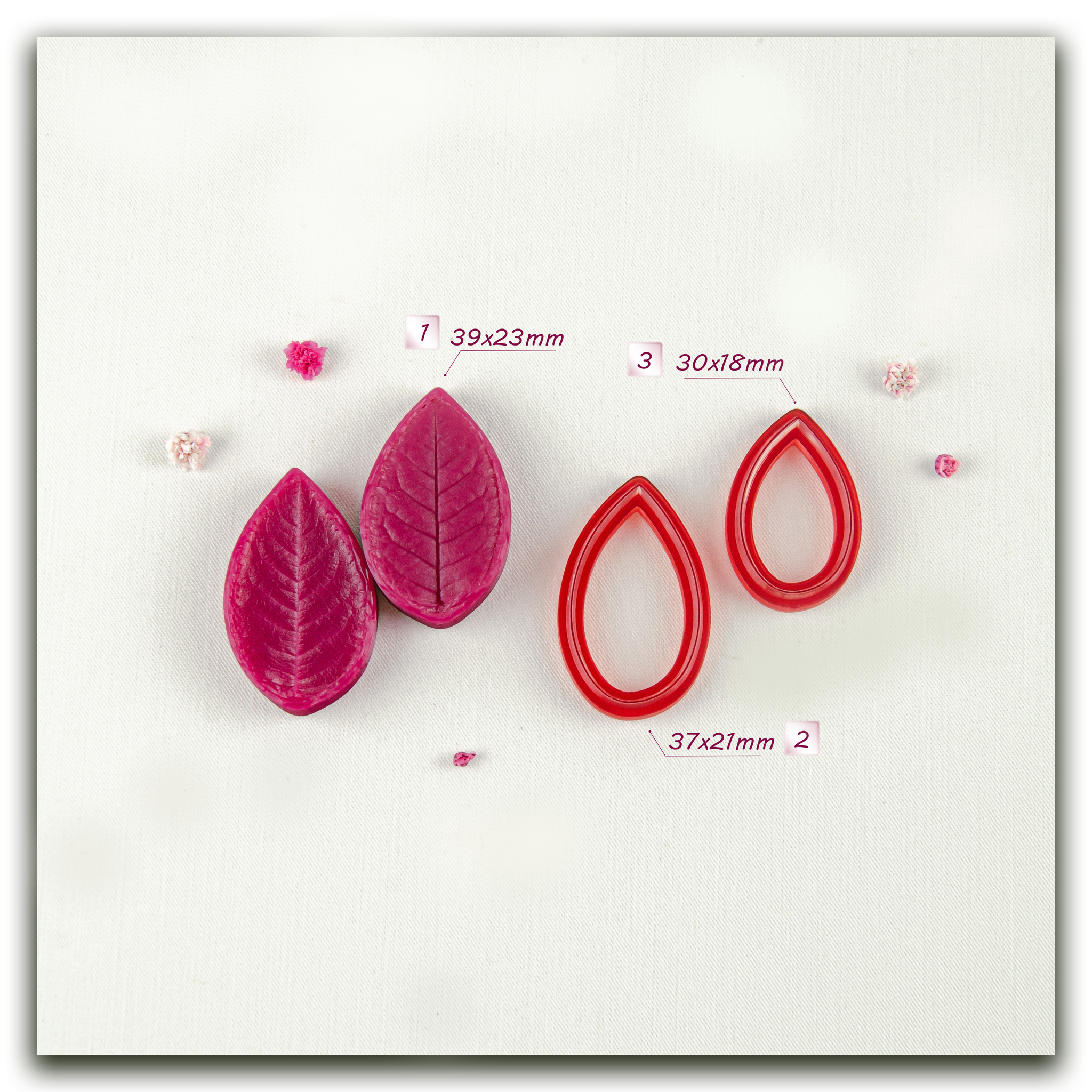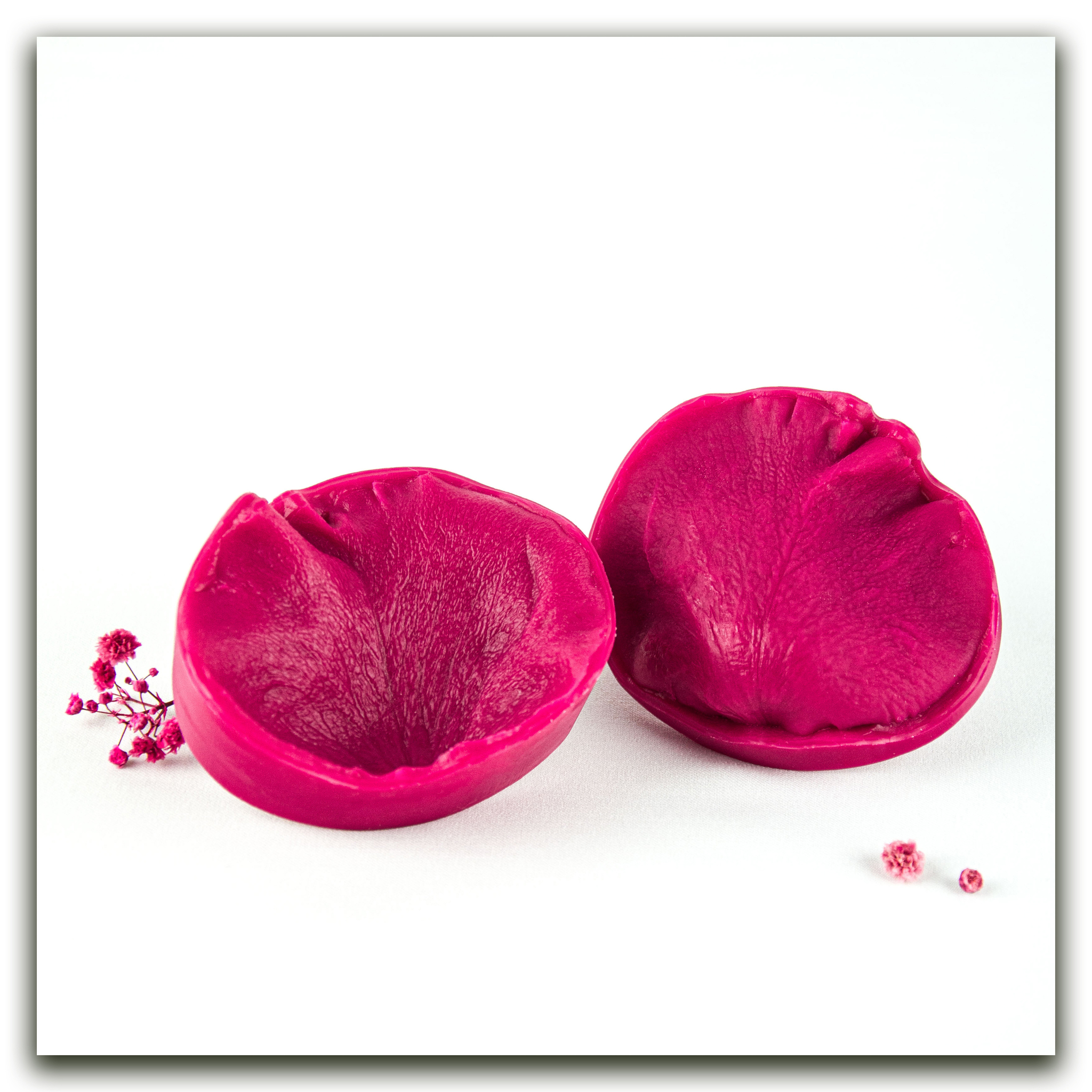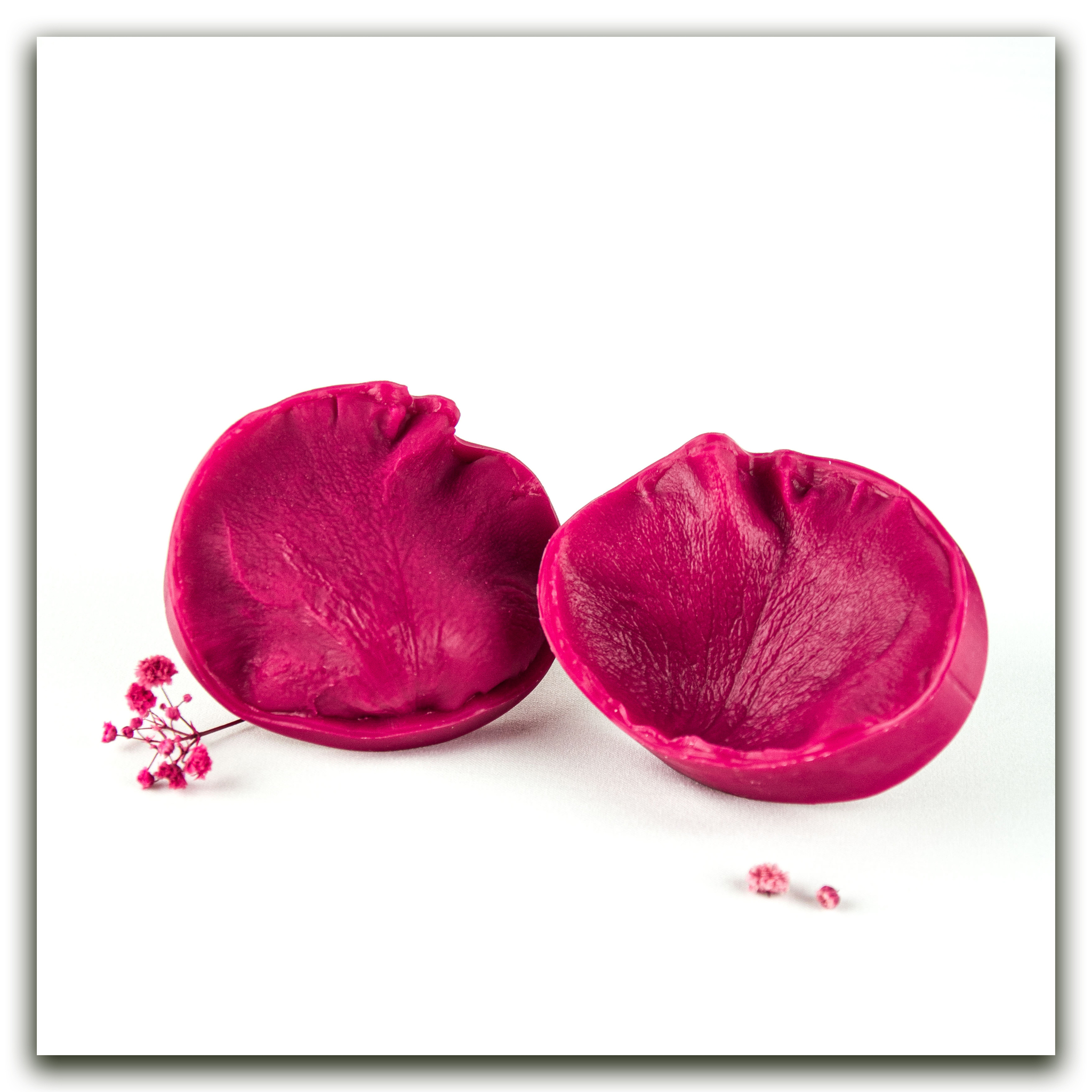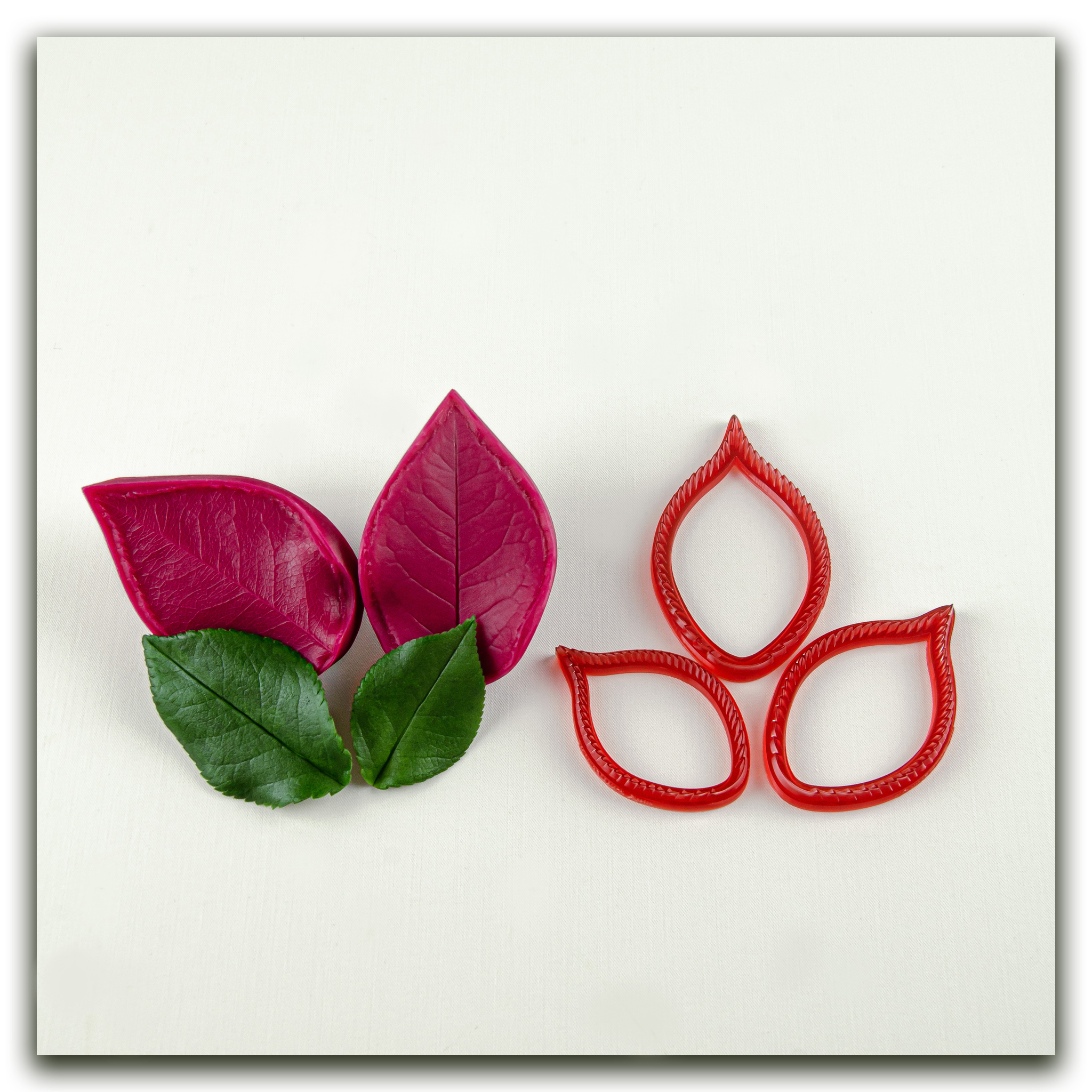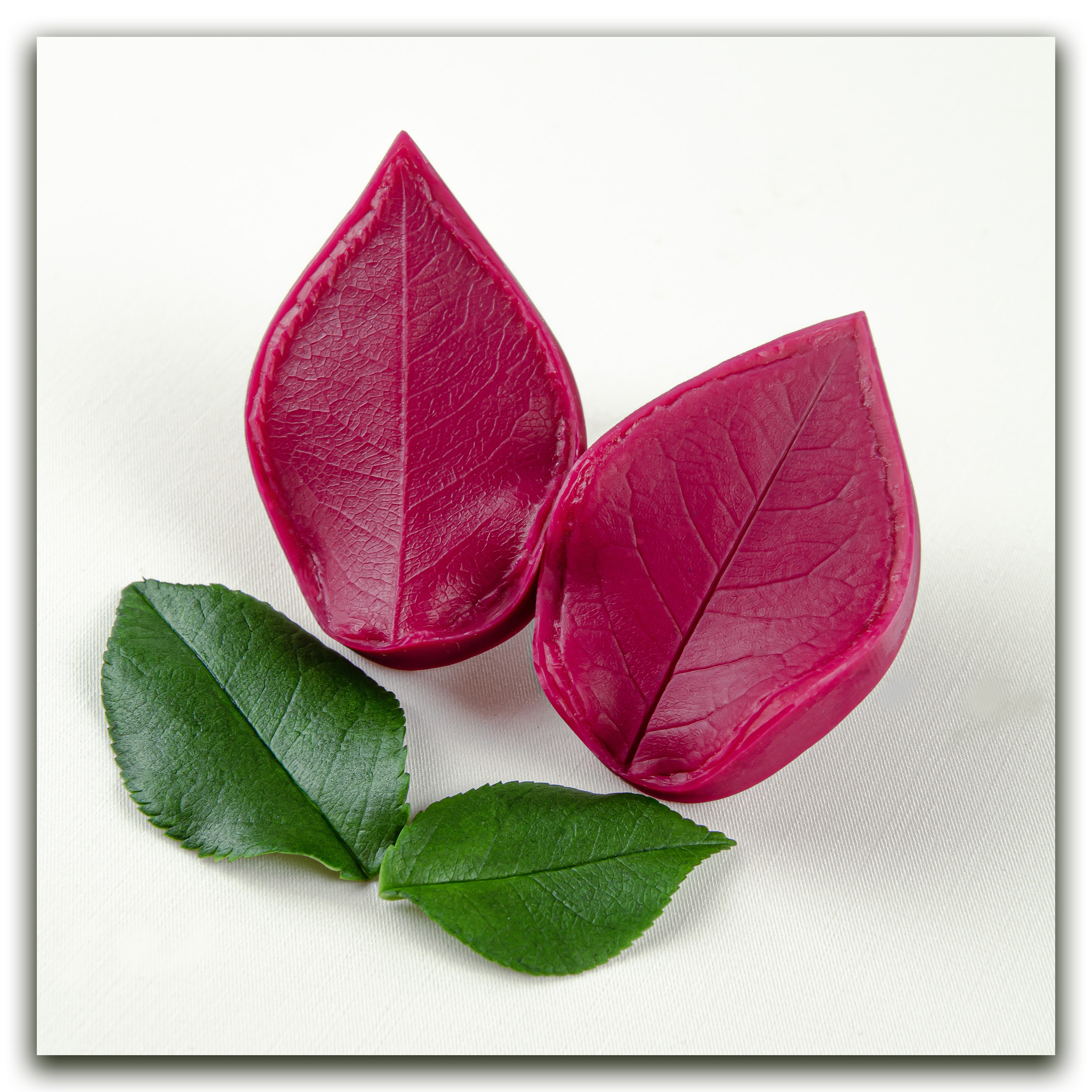 Изготавливаются методом двухстороннего снятия фактур с живого растения, повторяя даже самые мельчайшие изгибы и прожилки, что позволит вам создавать ботанические копии цветов и листьев! Предназначены для работы с холодным фарфором, самоотвердевающей и запекаемой полимерной глиной (не очень жесткой), фоамираном. Вайнеры так же подходят для мастики, шоколада и других масс для лепки.