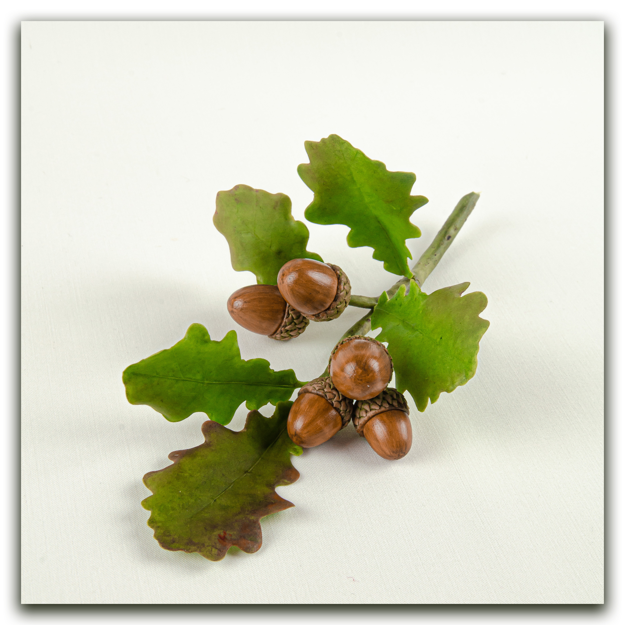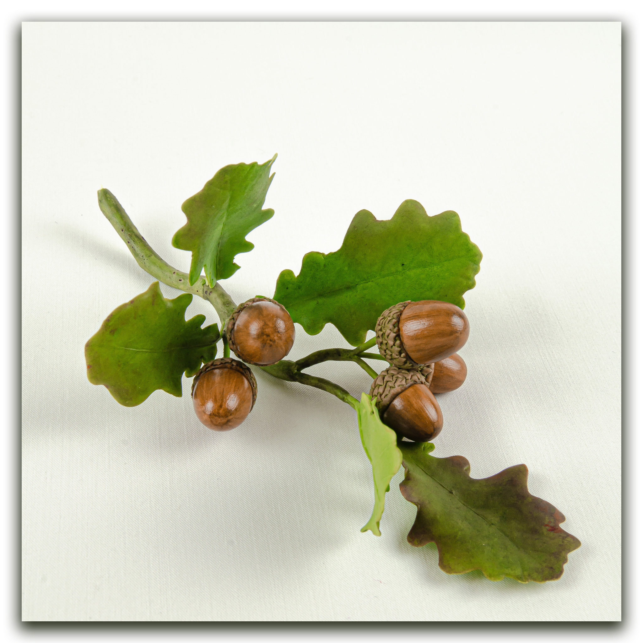 Пример веточки дуба из холодного фарфора вы можете видеть на фото.
