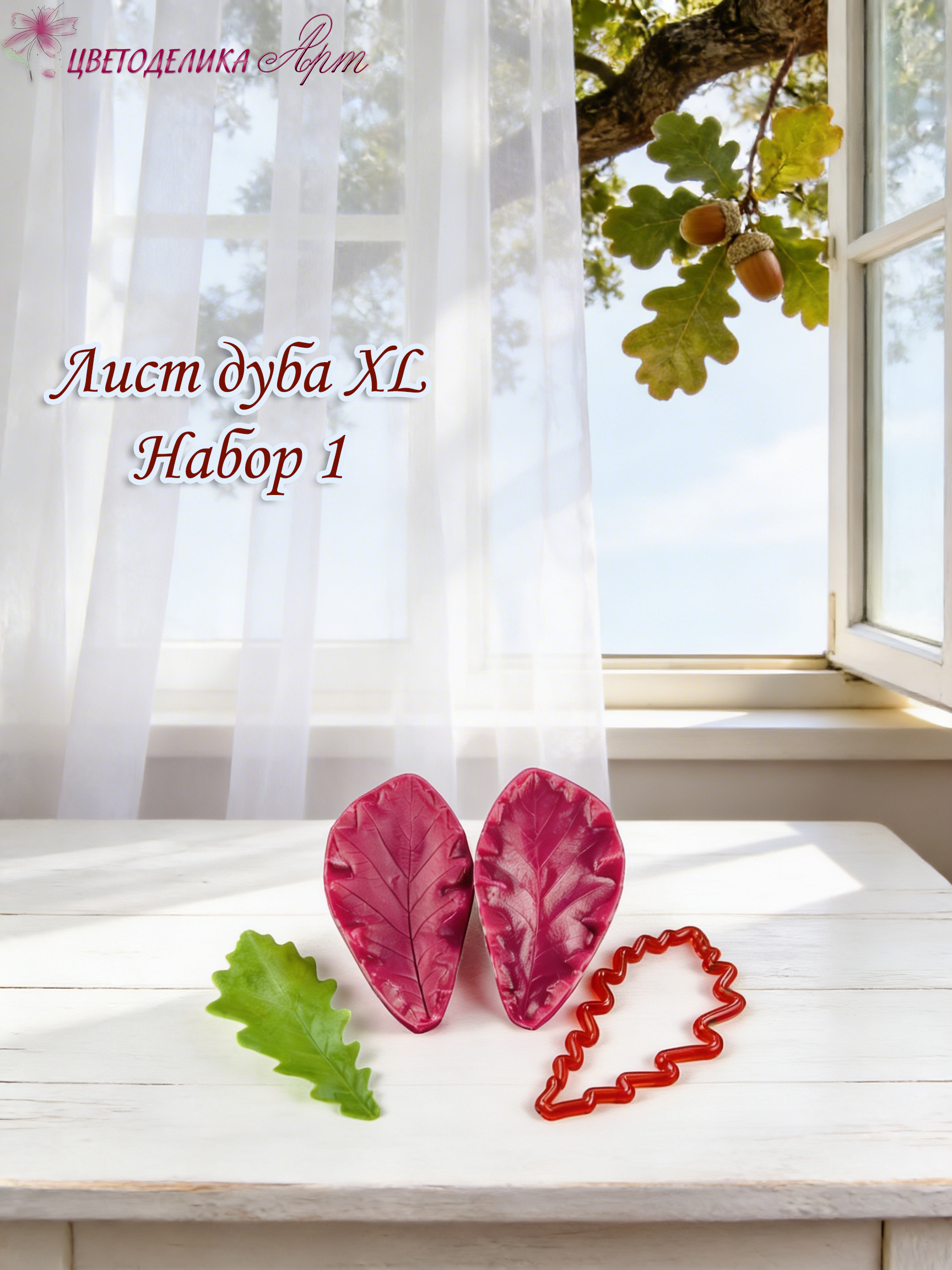 Силиконовый вайнер и каттер крупного листа дуба. Имеет слегка изогнутую форму в отличие от набора "Лист дуба XL. Набор 2". Будьте внимательны при выборе подходящего инструмента.