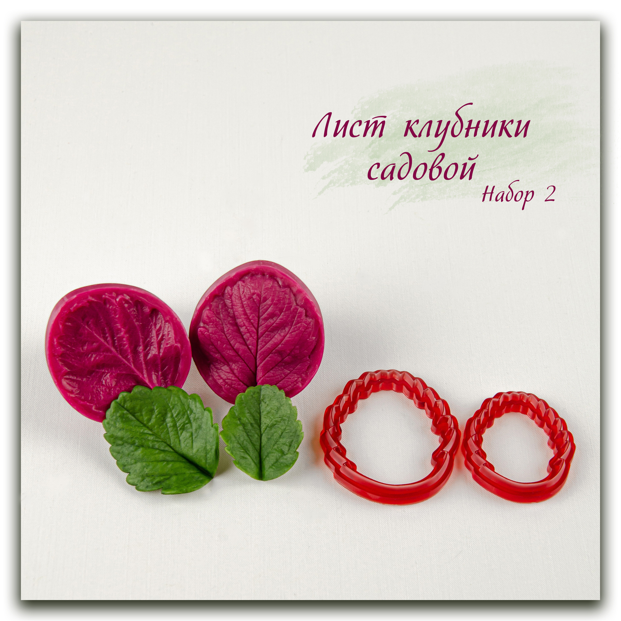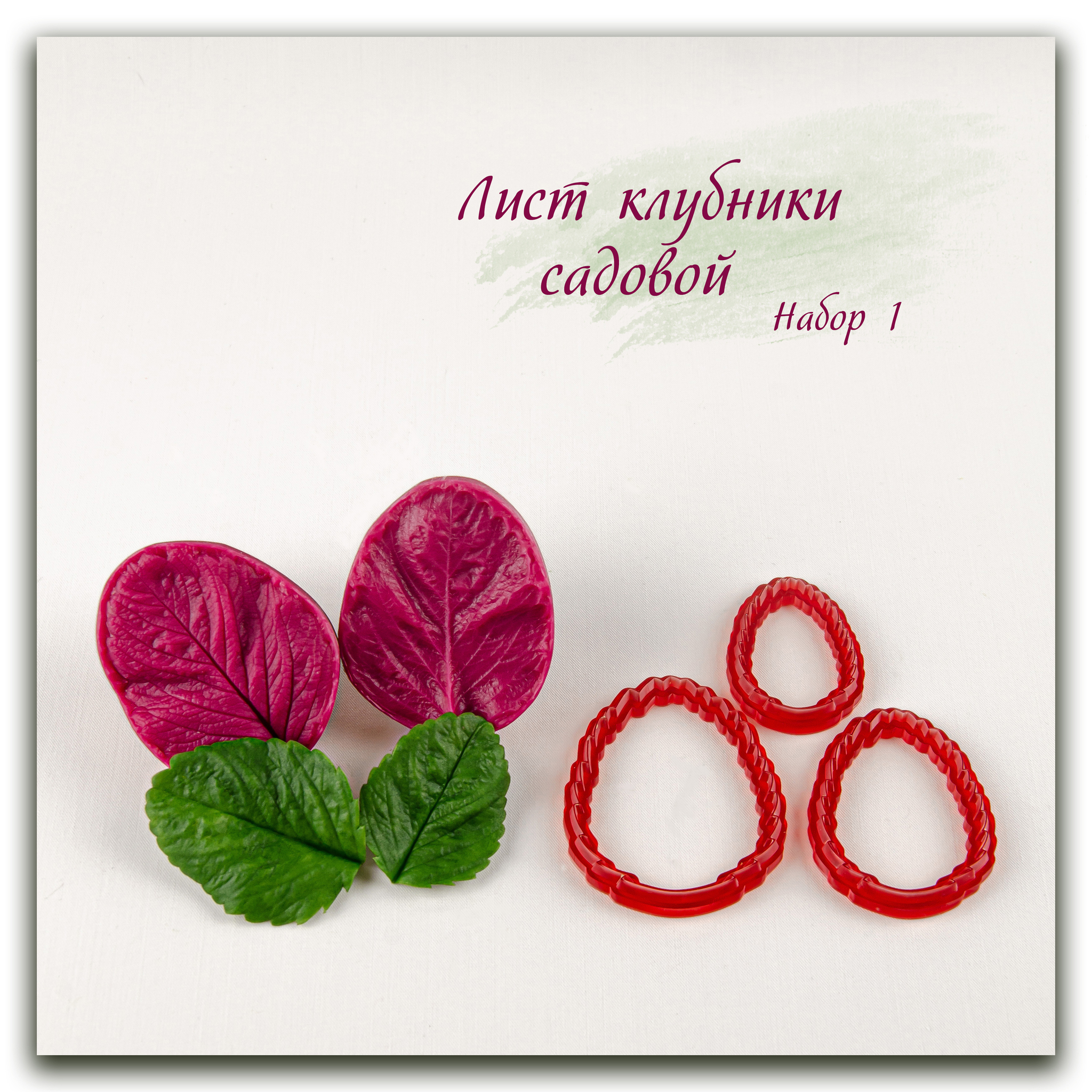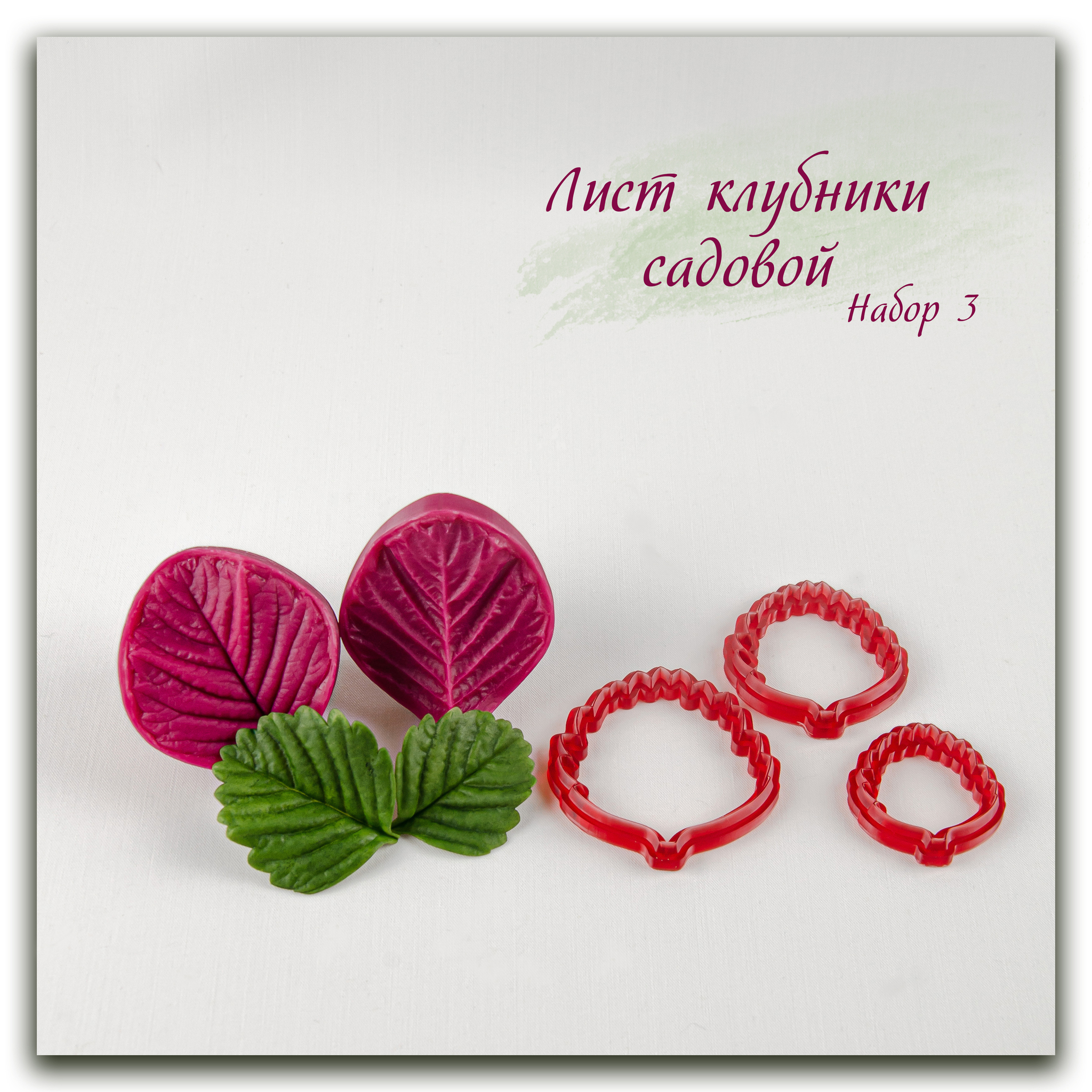 Силиконовый вайнер и фотополимерные каттеры для создания листьев клубники из различных пластичных масс - холодного фарфора, фоамирана, полимерных глин, мастики и шоколада и др.