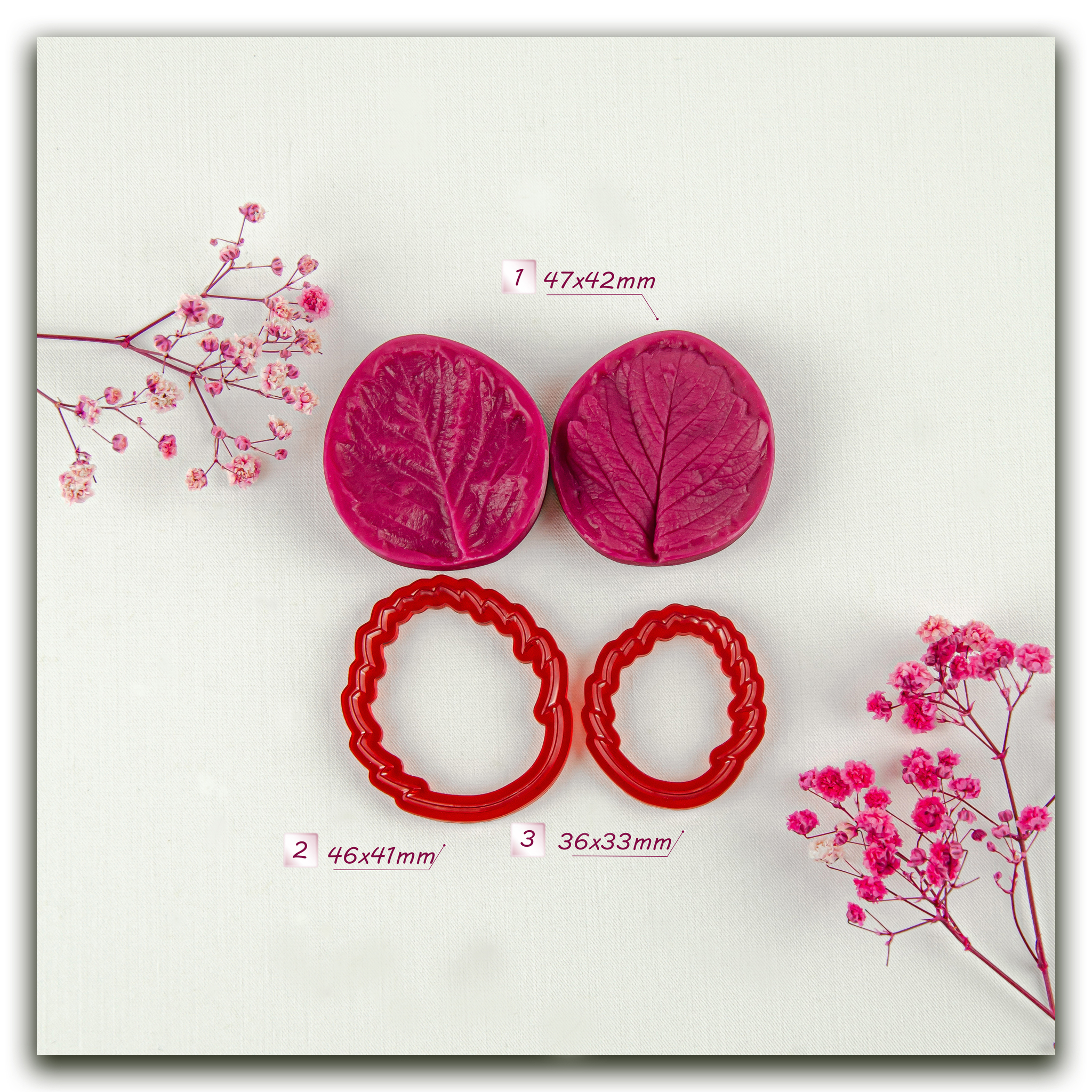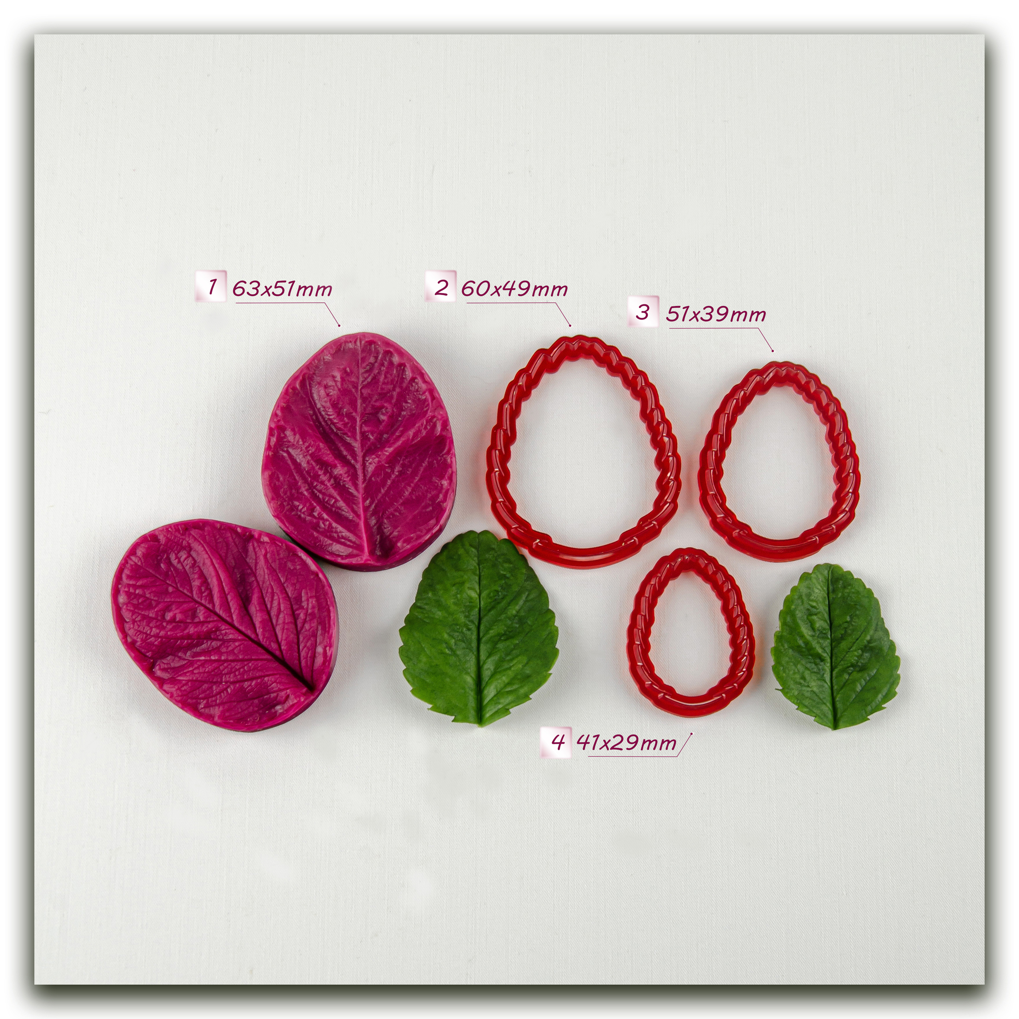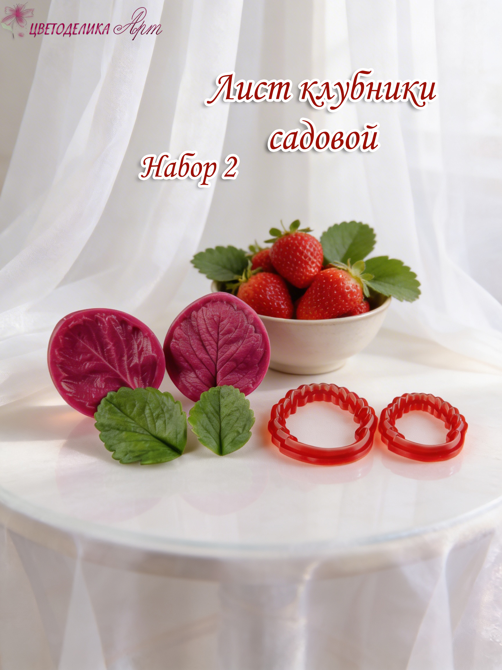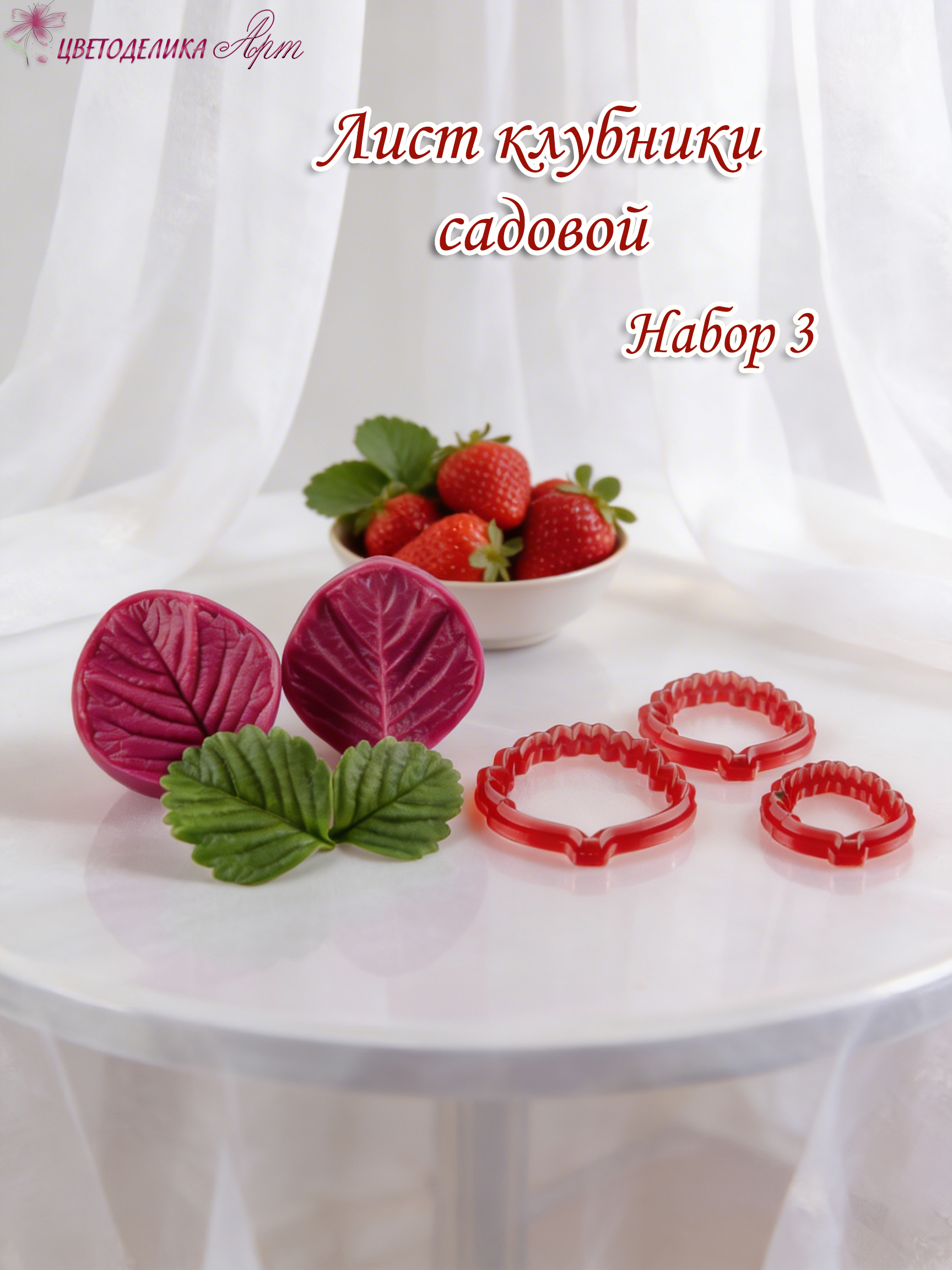 Силиконовый вайнер и фотополимерные каттеры для создания листьев клубники из различных пластичных масс - холодного фарфора, фоамирана, полимерных глин, мастики и шоколада и др.