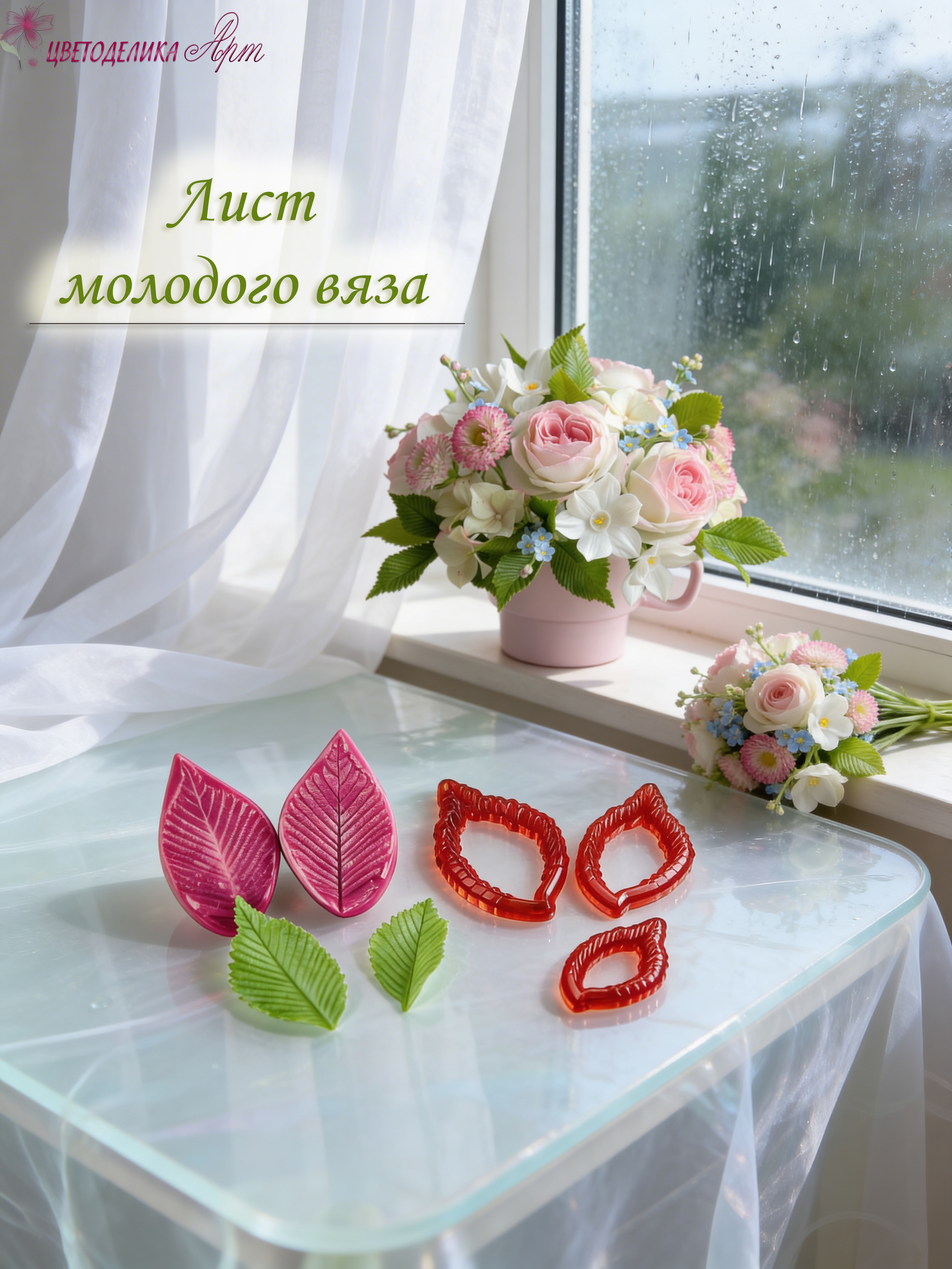 Набор вайнер+каттеры листа вяза. Для вайнера использовался молодой весенний лист вяза с максимально четкой и яркой фактурой.