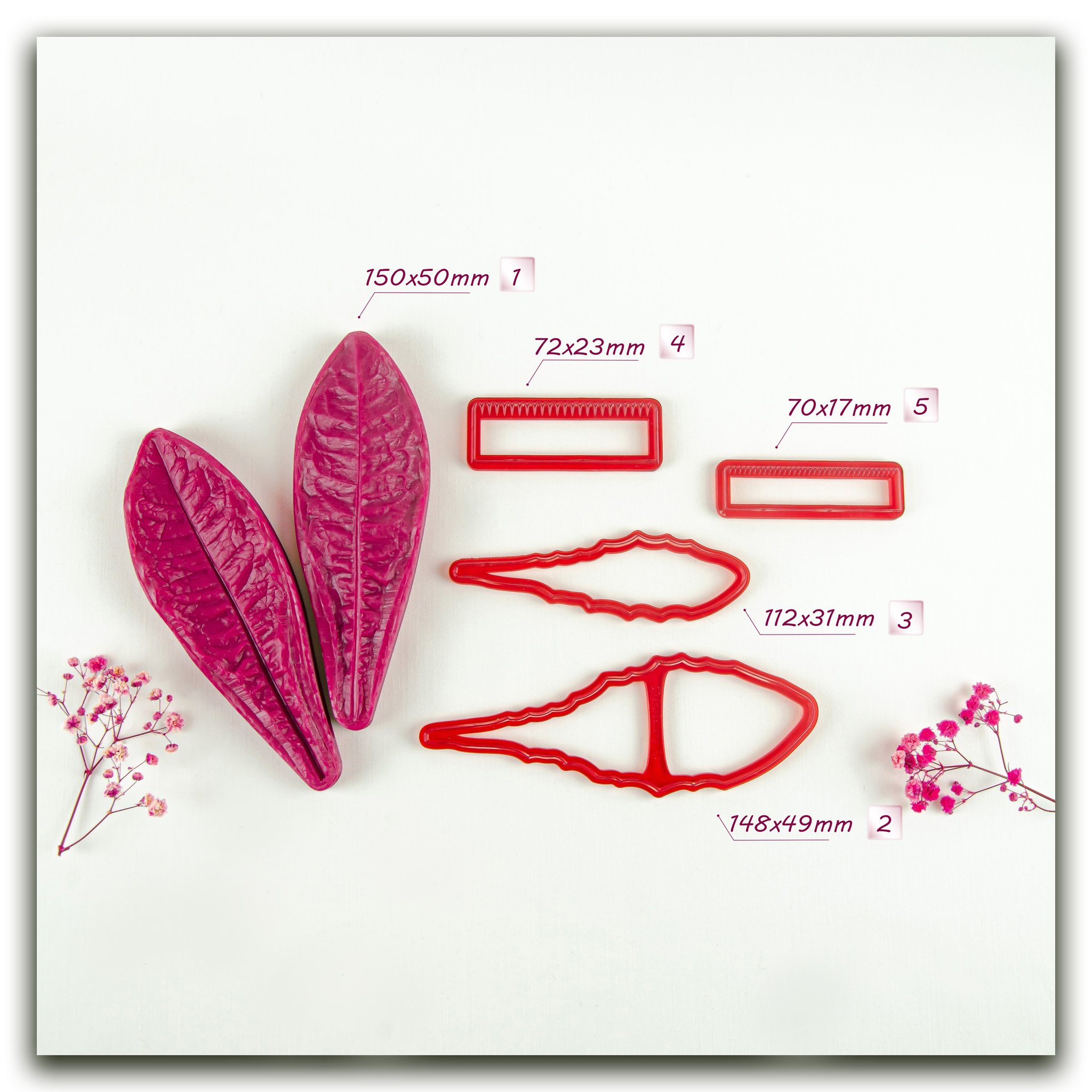 Имеют двухстороннюю фактуру живого растения, повторяя даже самые мельчайшие изгибы и прожилки, что позволит вам создавать ботанические копии цветов и листьев! Предназначены для работы с холодным фарфором,