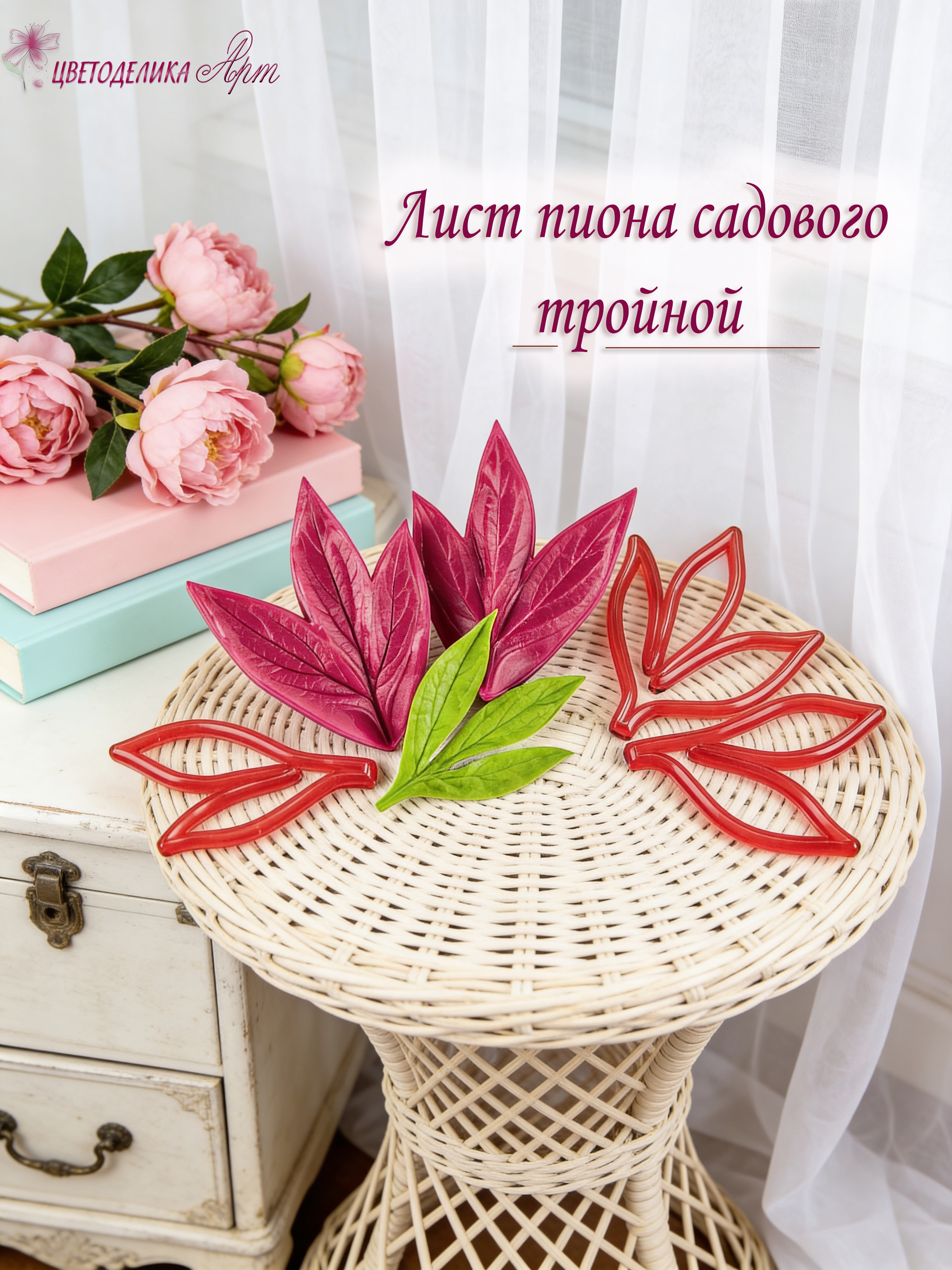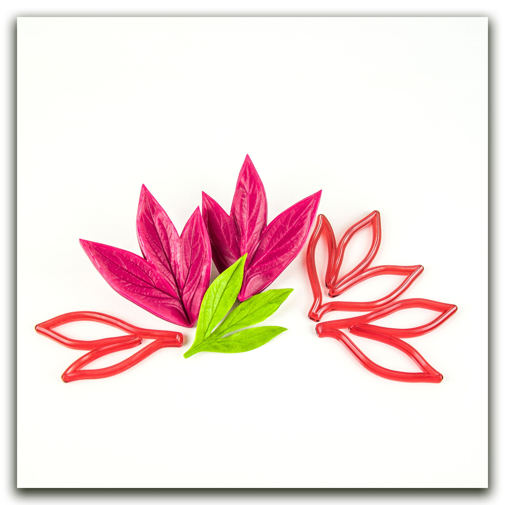 Красивый сложный тройной лист садового пиона - набор вайнер и каттеры. С помощью данного набора так же можно лепить двойные листья.