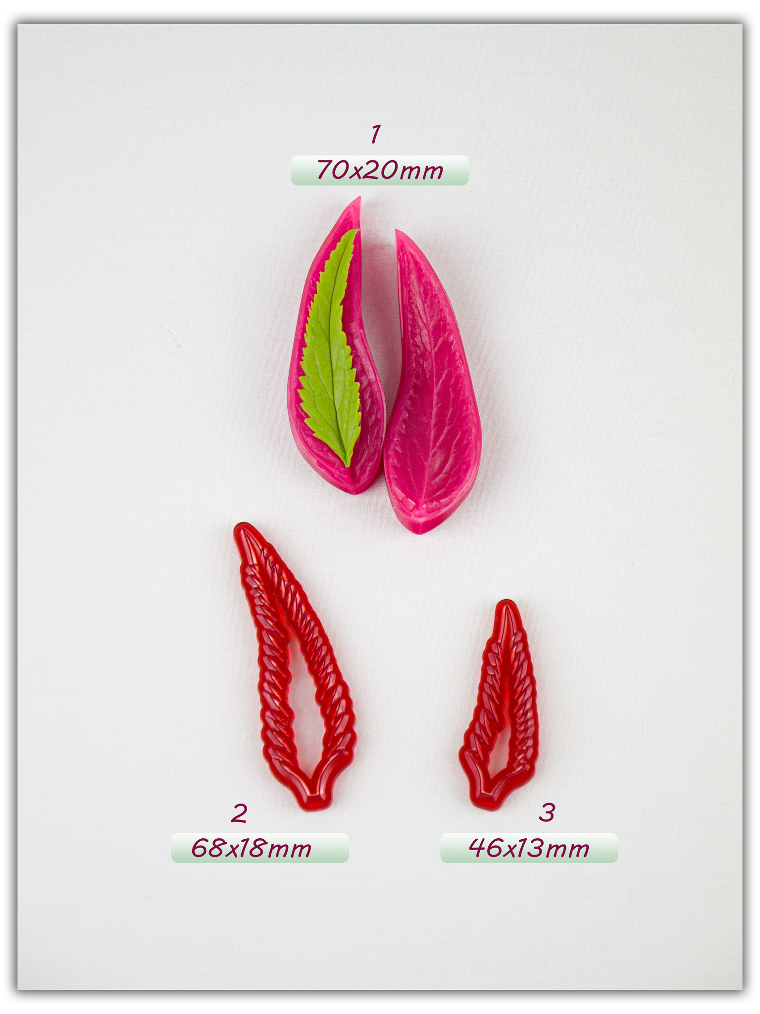 Имеют двухстороннюю фактуру живого растения, повторяя даже самые мельчайшие изгибы и прожилки, что позволит вам создавать ботанические копии цветов и листьев! Предназначены для работы с холодным фарфором,