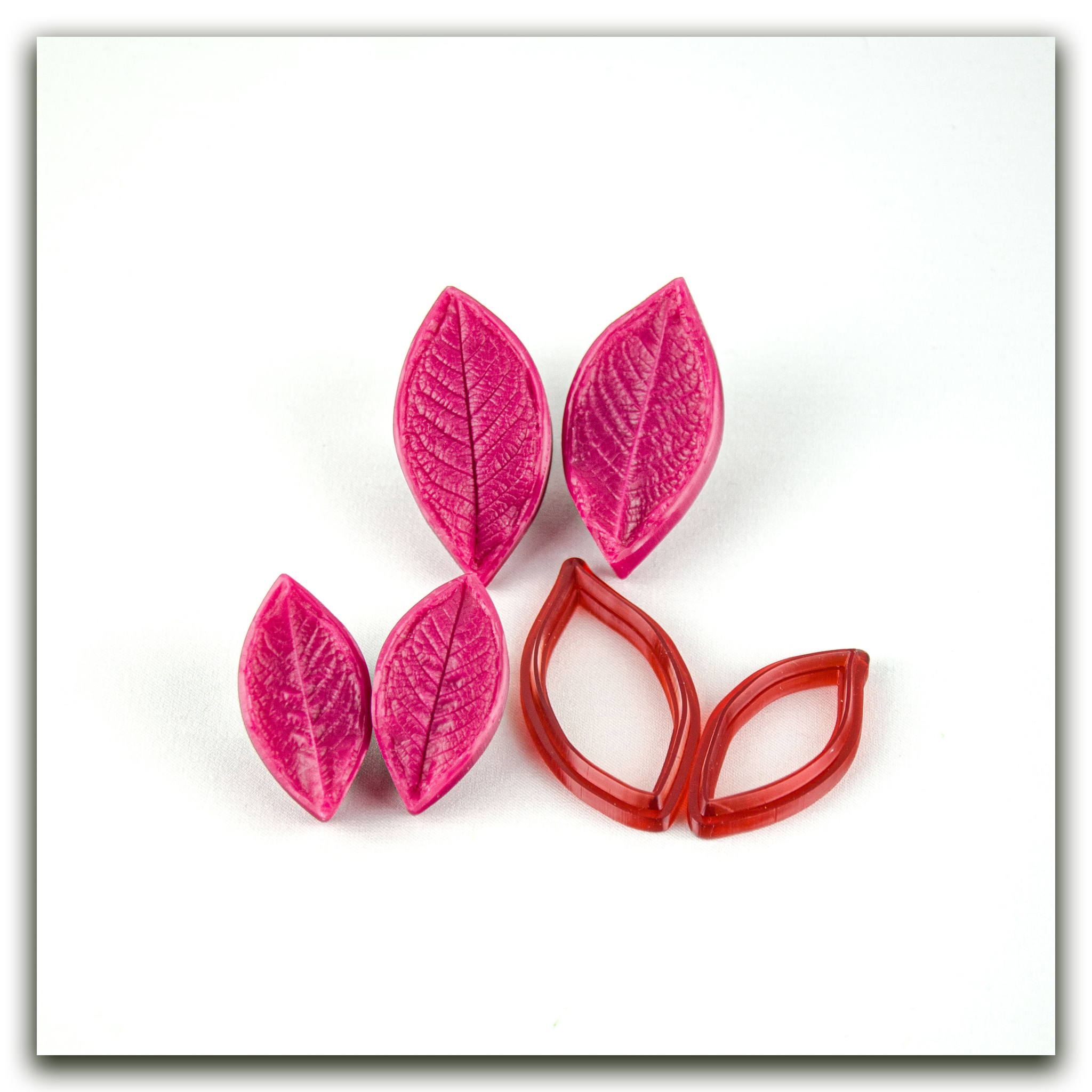 Набор силиконовых вайнеров и каттеров для лепки маленьких листьев черёмухи.