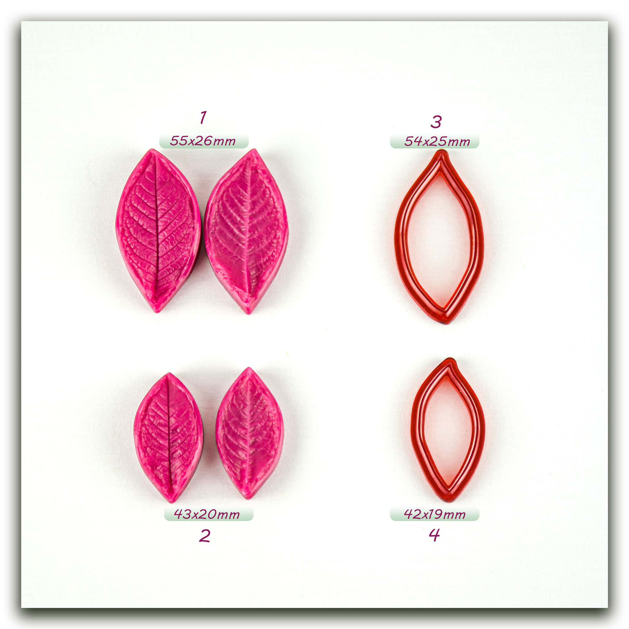 Имеют двухстороннюю фактуру живого растения, повторяя даже самые мельчайшие изгибы и прожилки, что позволит вам создавать ботанические копии цветов и листьев! Предназначены для работы с холодным фарфором,