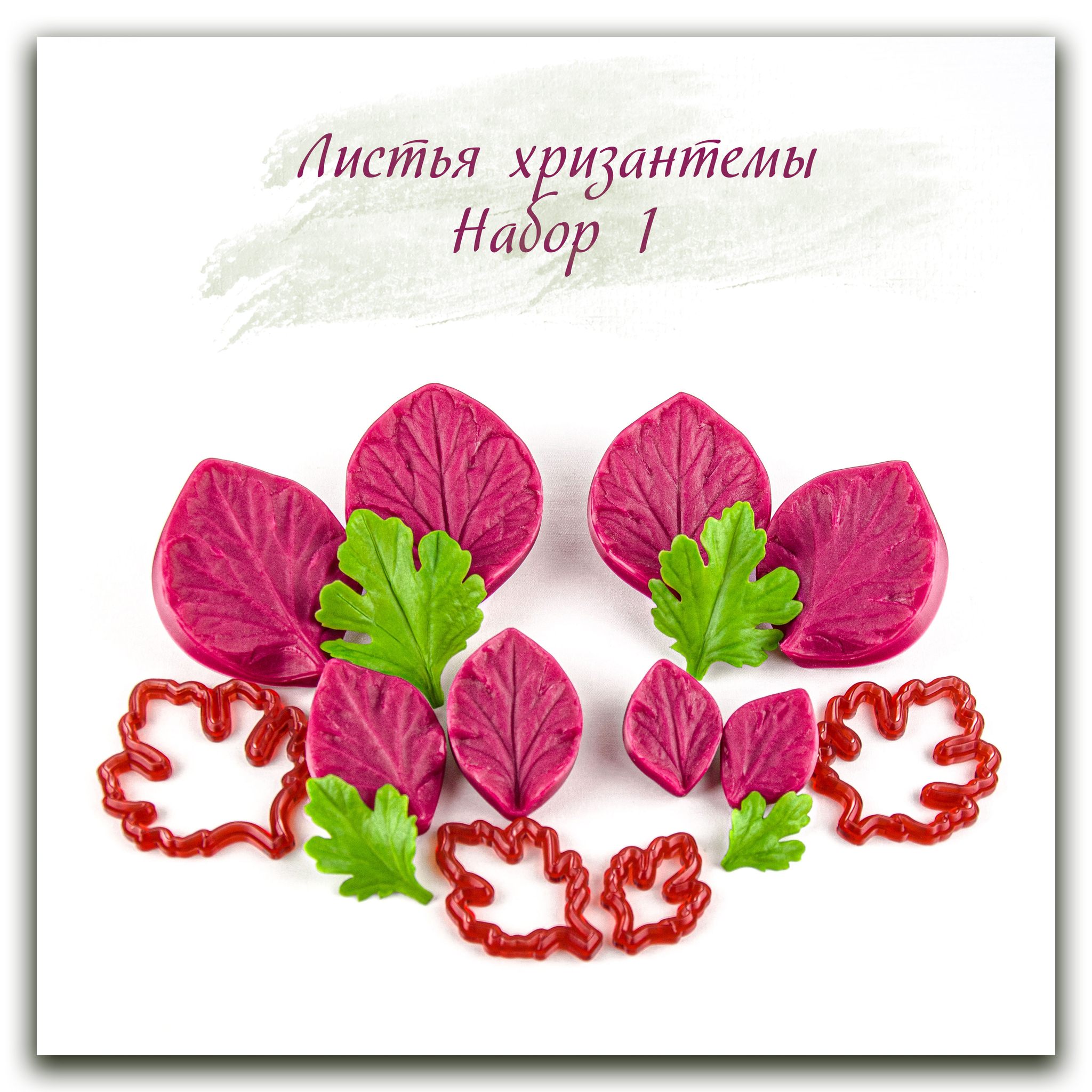 Набор силиконовых вайнеров и каттеров для лепки реалистичных листьев хризантемы. Набор 1 - листья более округлой формы, а набор 2 - более продолговатые листья. Будьте внимательны при заказе!
