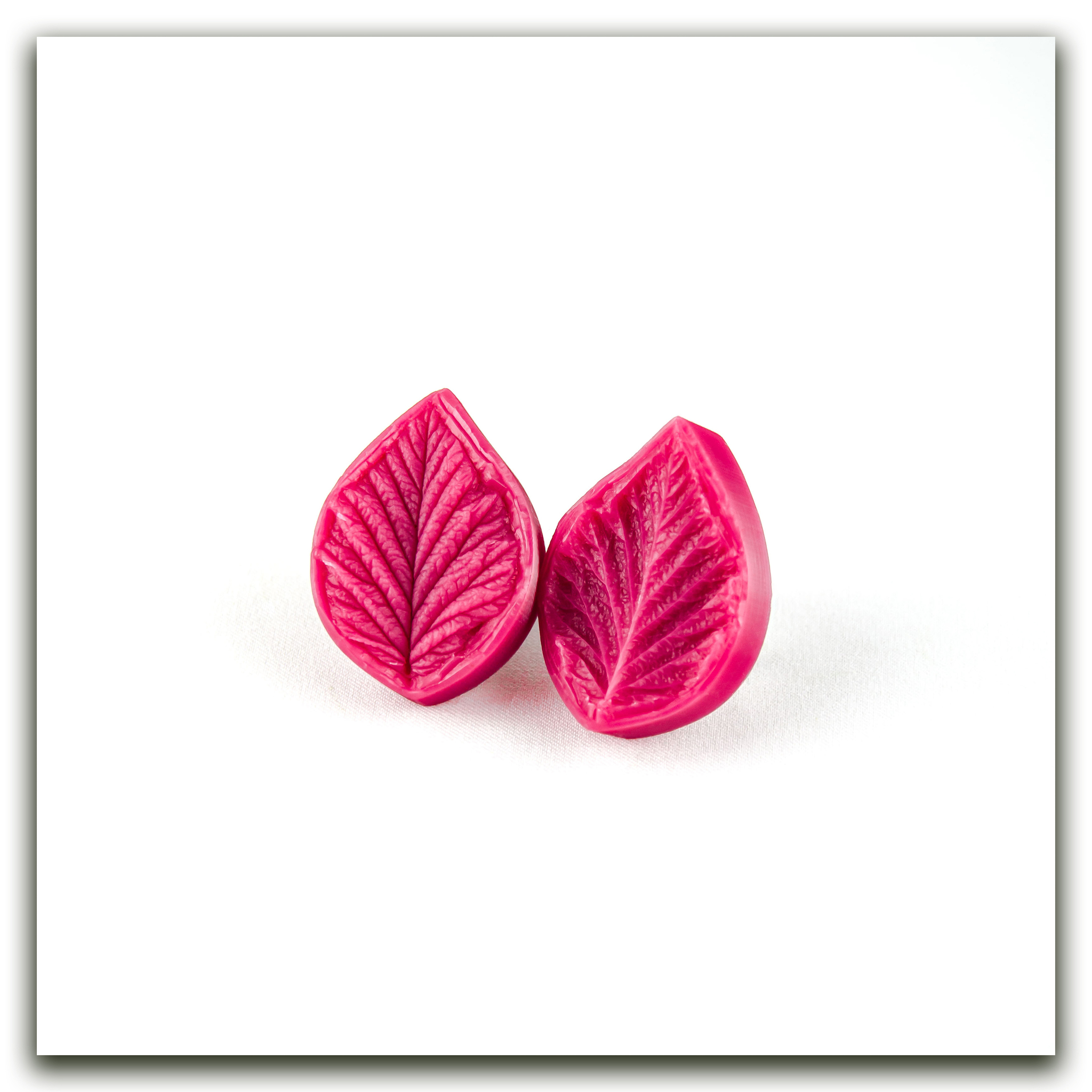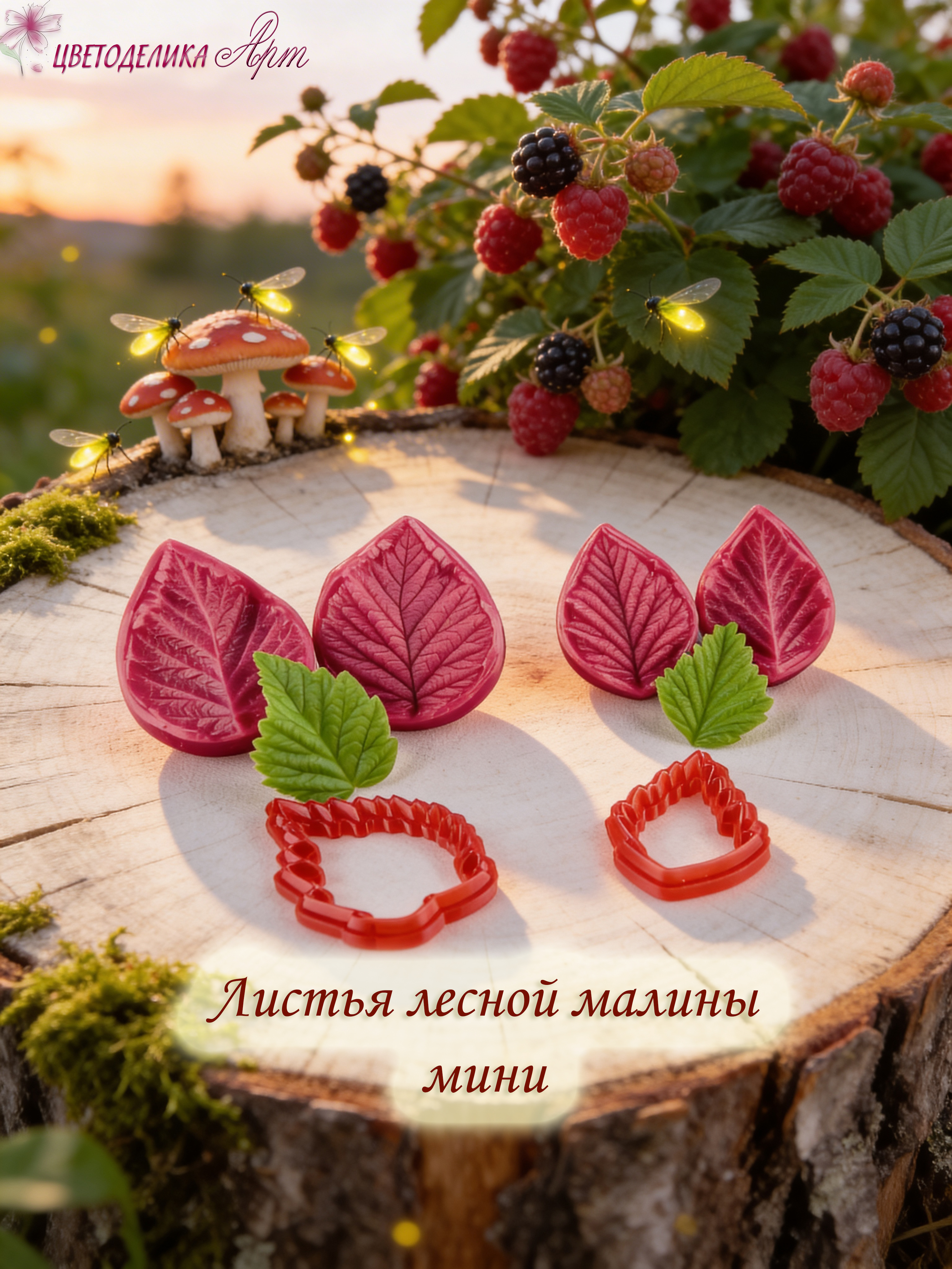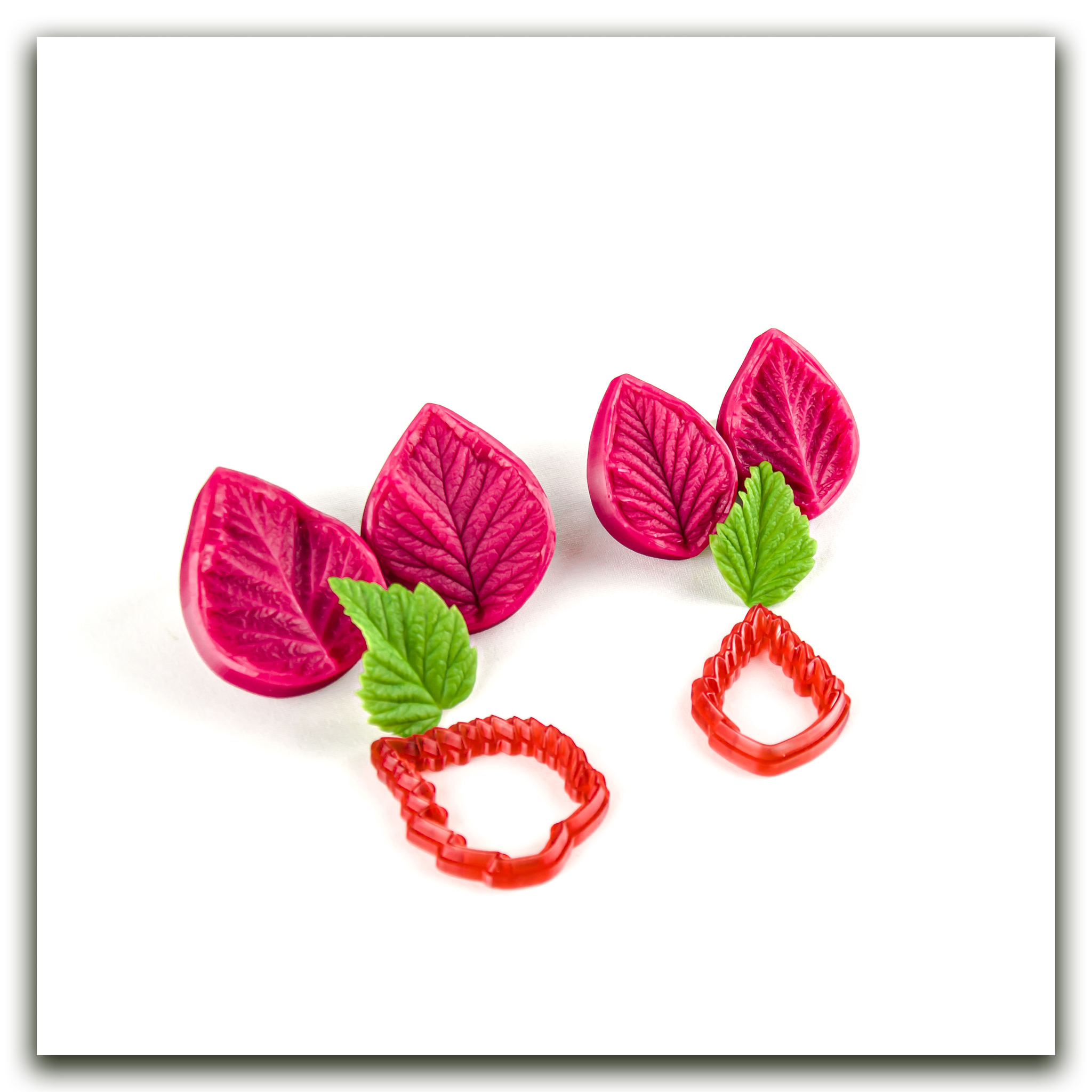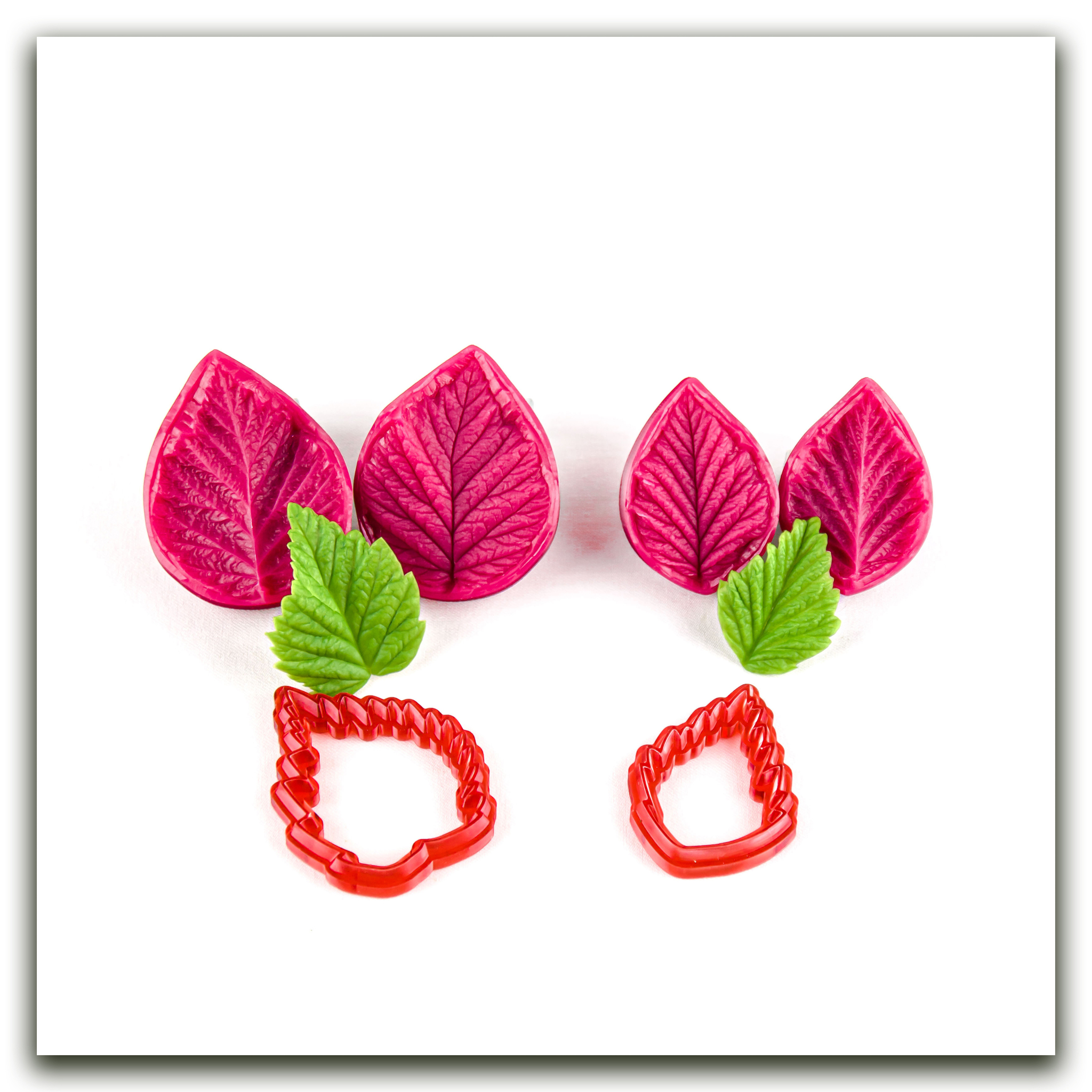 Набор силиконовых вайнеров и каттеров для маленьких листьев лесной малины. Фактура этих вайнеров очень четкая, снята с нежных молодых листочков, обеспечивает максимальную точность передачи мельчайших прожилок и контуров.