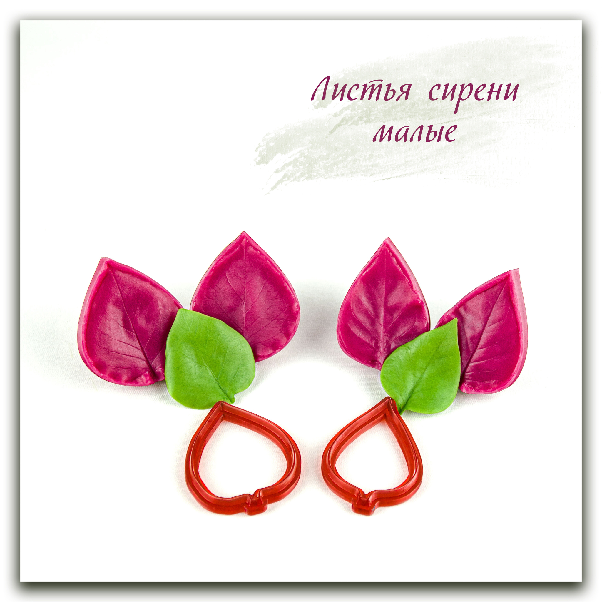 Набор силиконовых вайнеров и каттеров для лепки малых листьев сирени. Форма листьев - классическая.