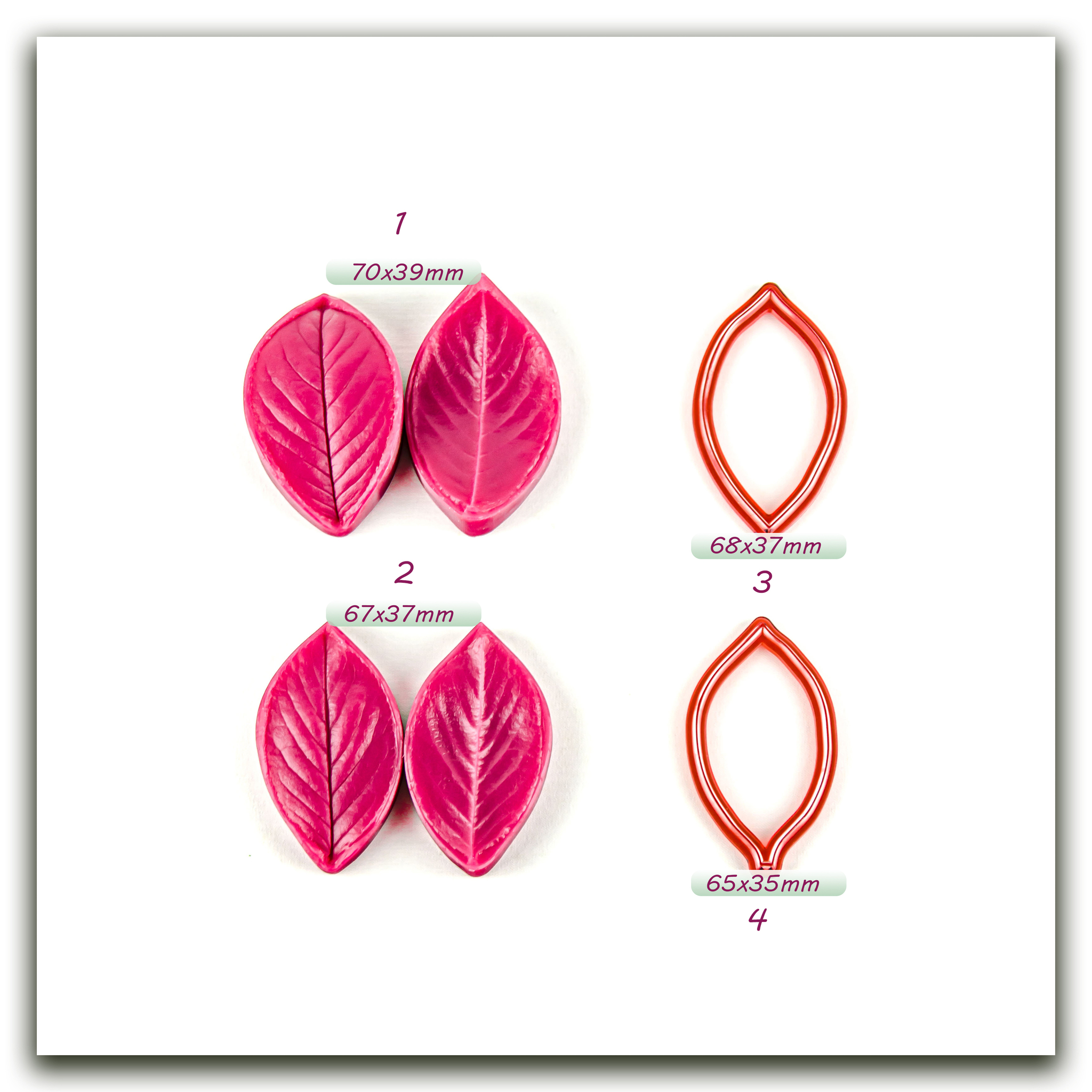 Имеют двухстороннюю фактуру живого растения, повторяя даже самые мельчайшие изгибы и прожилки, что позволит вам создавать ботанические копии цветов и листьев! Предназначены для работы с холодным фарфором,