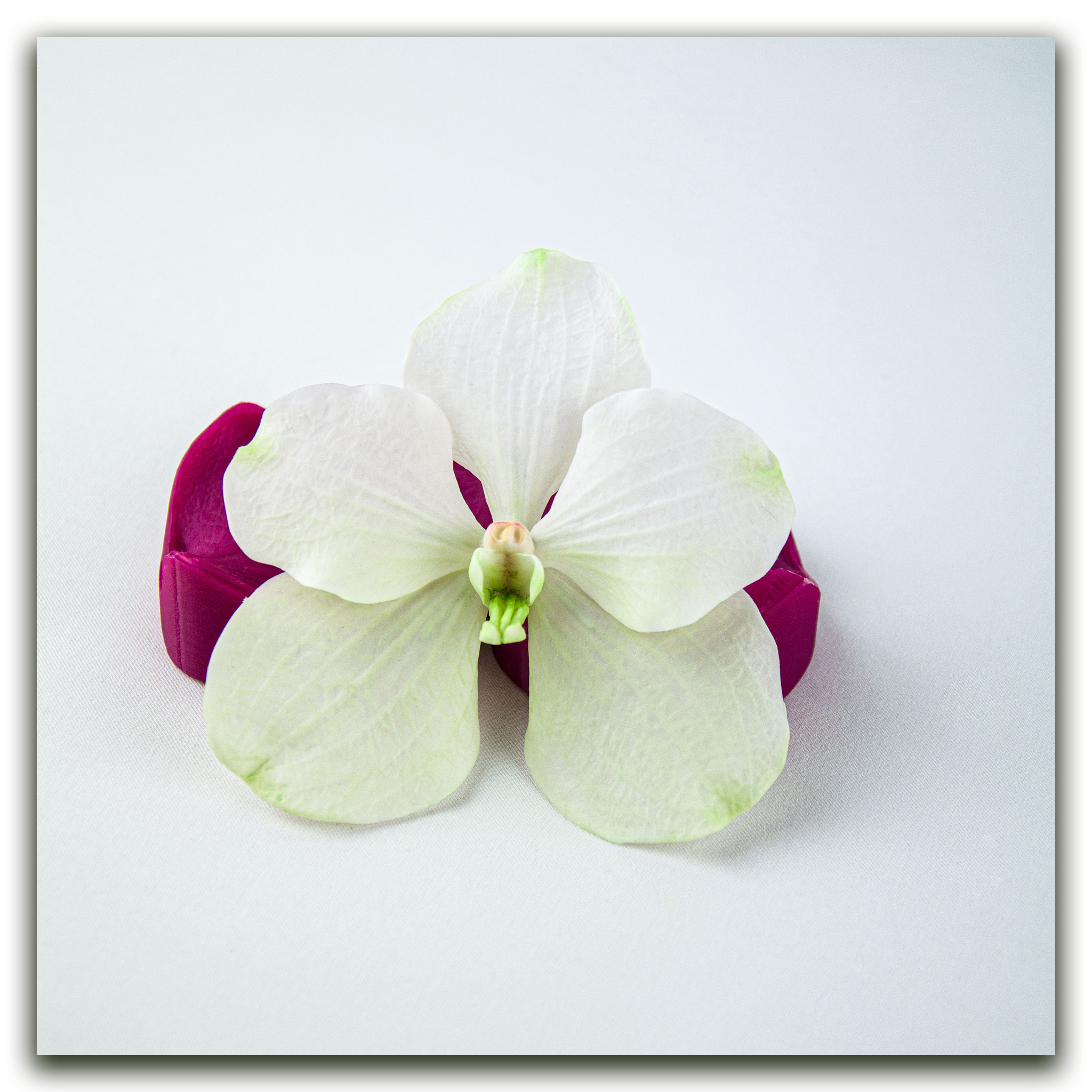 Очень четкая, красивая фактура вайнеров Ванды позволит добиться максимальной реалистичности, сходства с живыми цветами! На фото вы можете видеть пример готового цветка Ванды в белом оттенке с зелеными акцентами по краям лепестков.