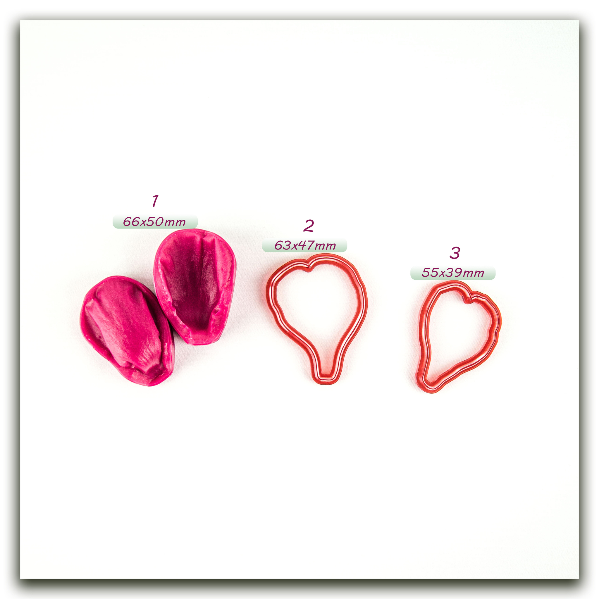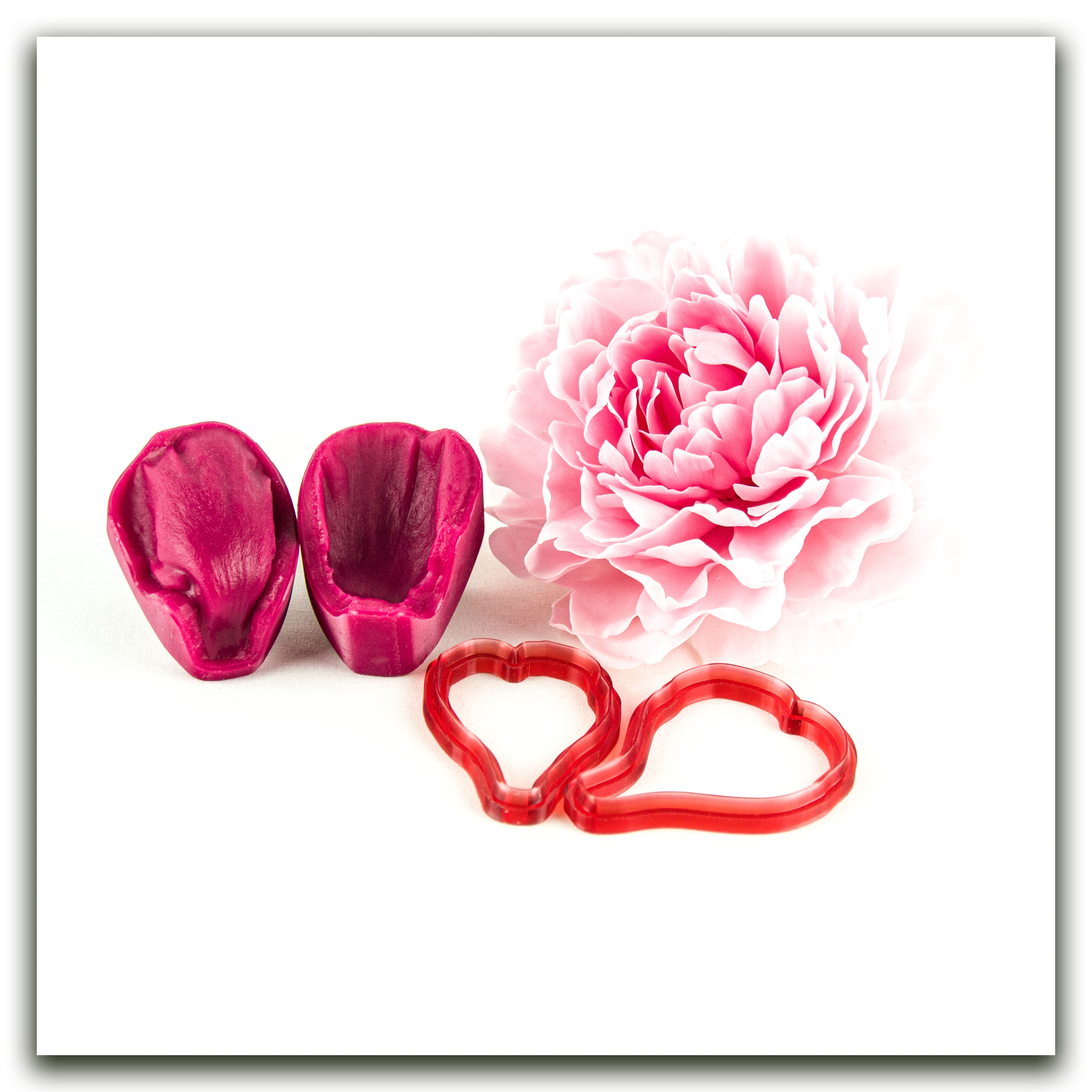 Силиконовый вайнер и каттеры рубашечных лепестков пиона. Вайнер глубокий, повторяющий изгиб крайнего завершающего лепестка. Для создания максимально реалистичных цветков пиона.