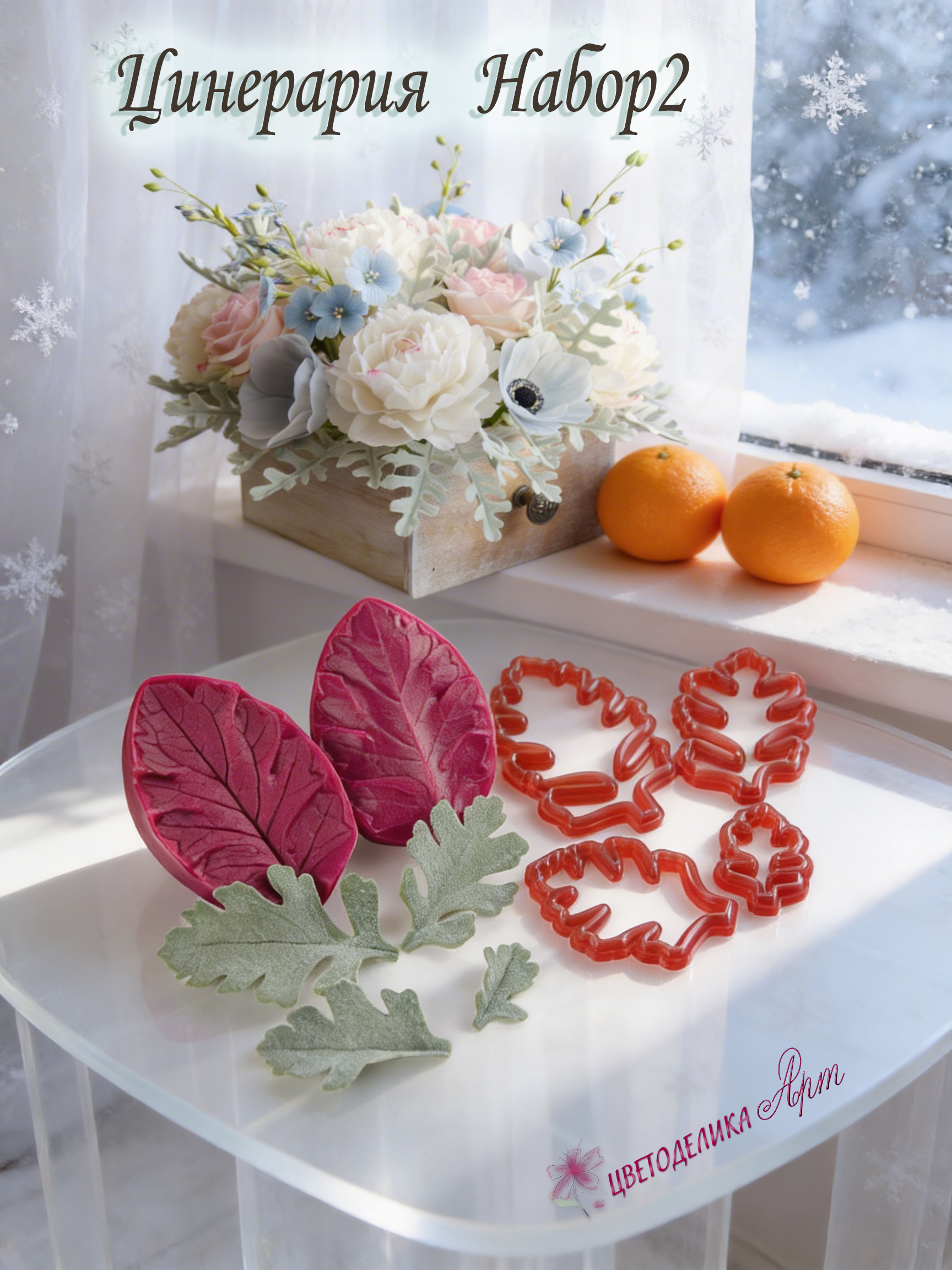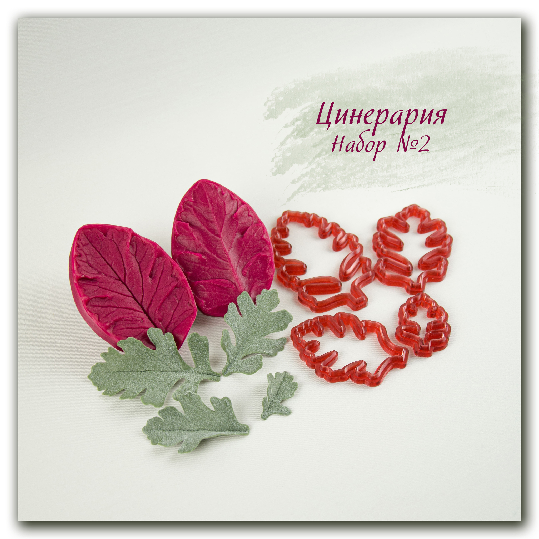 Цинерария имеет очень красивые резные листья. Каттеры идеально подходят к вайнеру. Вам не нужно вырезать эти сложные листья вручную. Листья легко армируются проволокой прямо в вайнере благодаря удобной глубокой центральной прожилке.